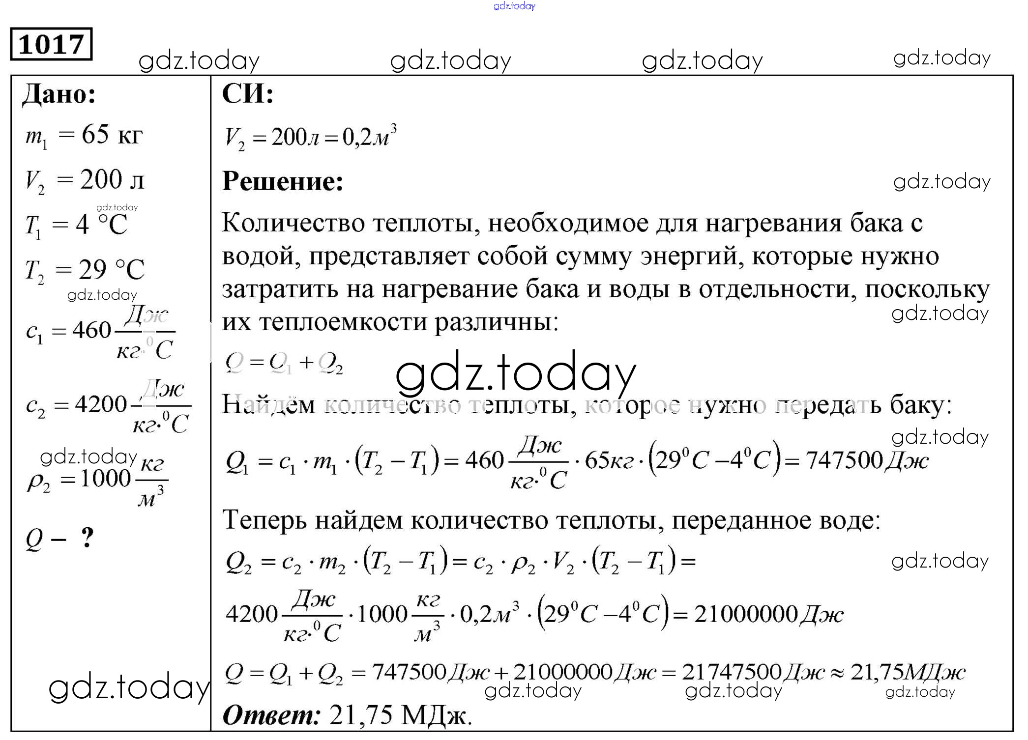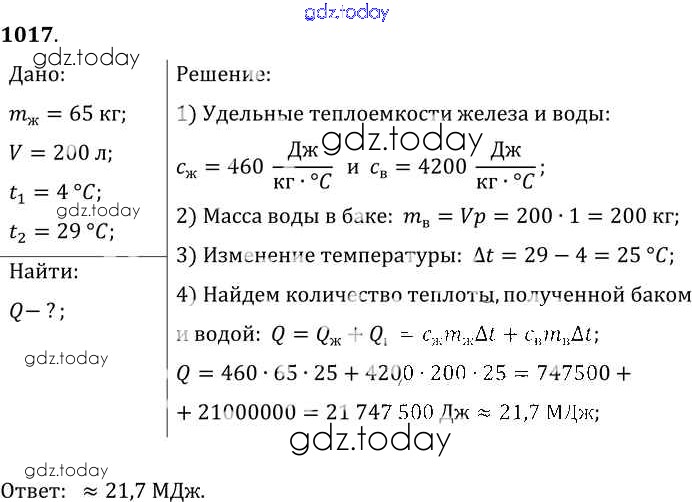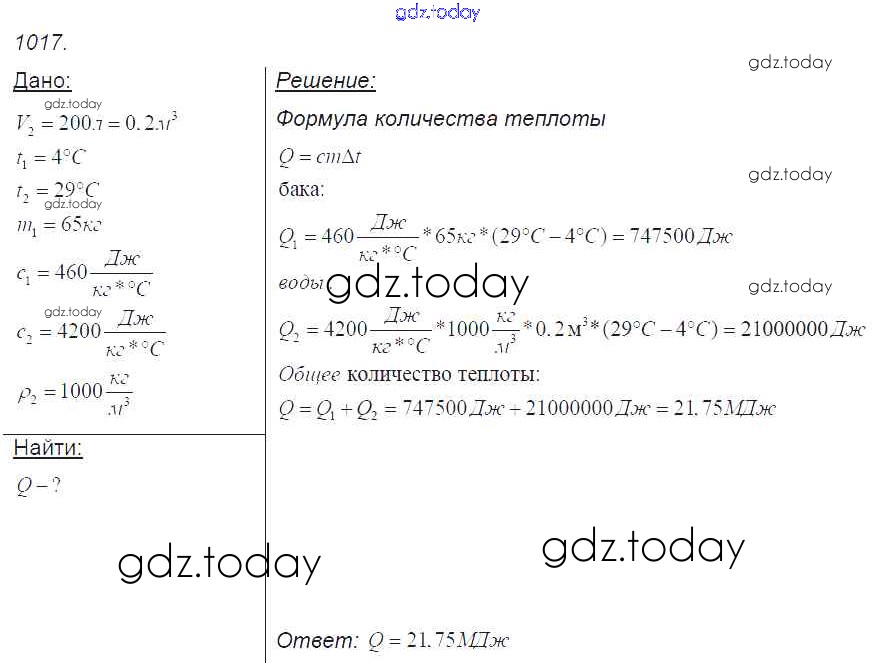 На страницах сайта gdz.today вы найдете учебный и вспомогательный материал, направленный на улучшения знаний школьной программы. ГДЗ - онлайн мир знаний Решение к заданиям 1017 Сборнику задач по Физике для 7-9 класса Лукашик, Иванова Просвещение 2011