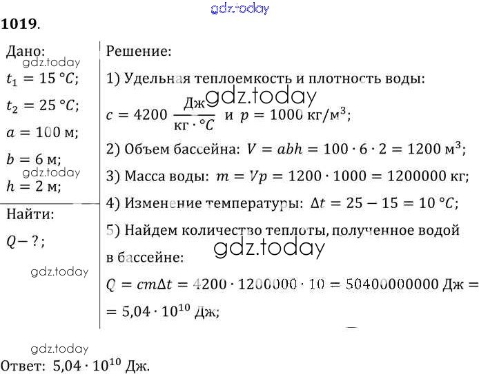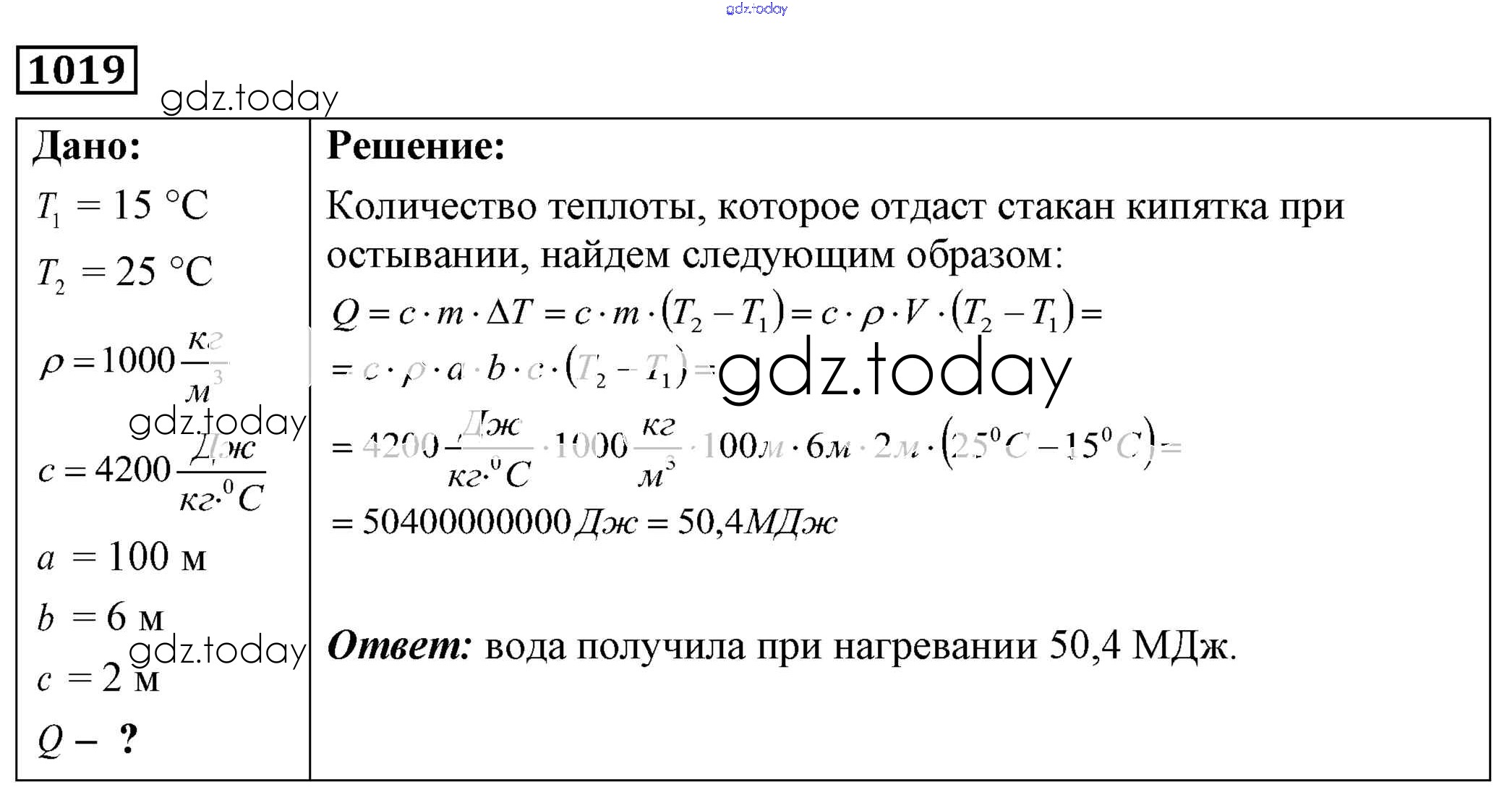 На страницах сайта gdz.today вы найдете учебный и вспомогательный материал, направленный на улучшения знаний школьной программы. ГДЗ - онлайн мир знаний Решение к заданиям 1019 Сборнику задач по Физике для 7-9 класса Лукашик, Иванова Просвещение 2011