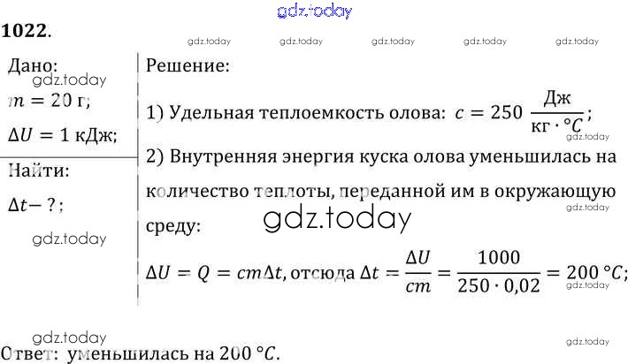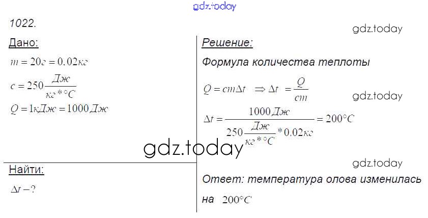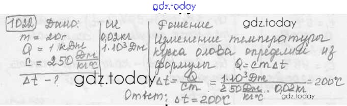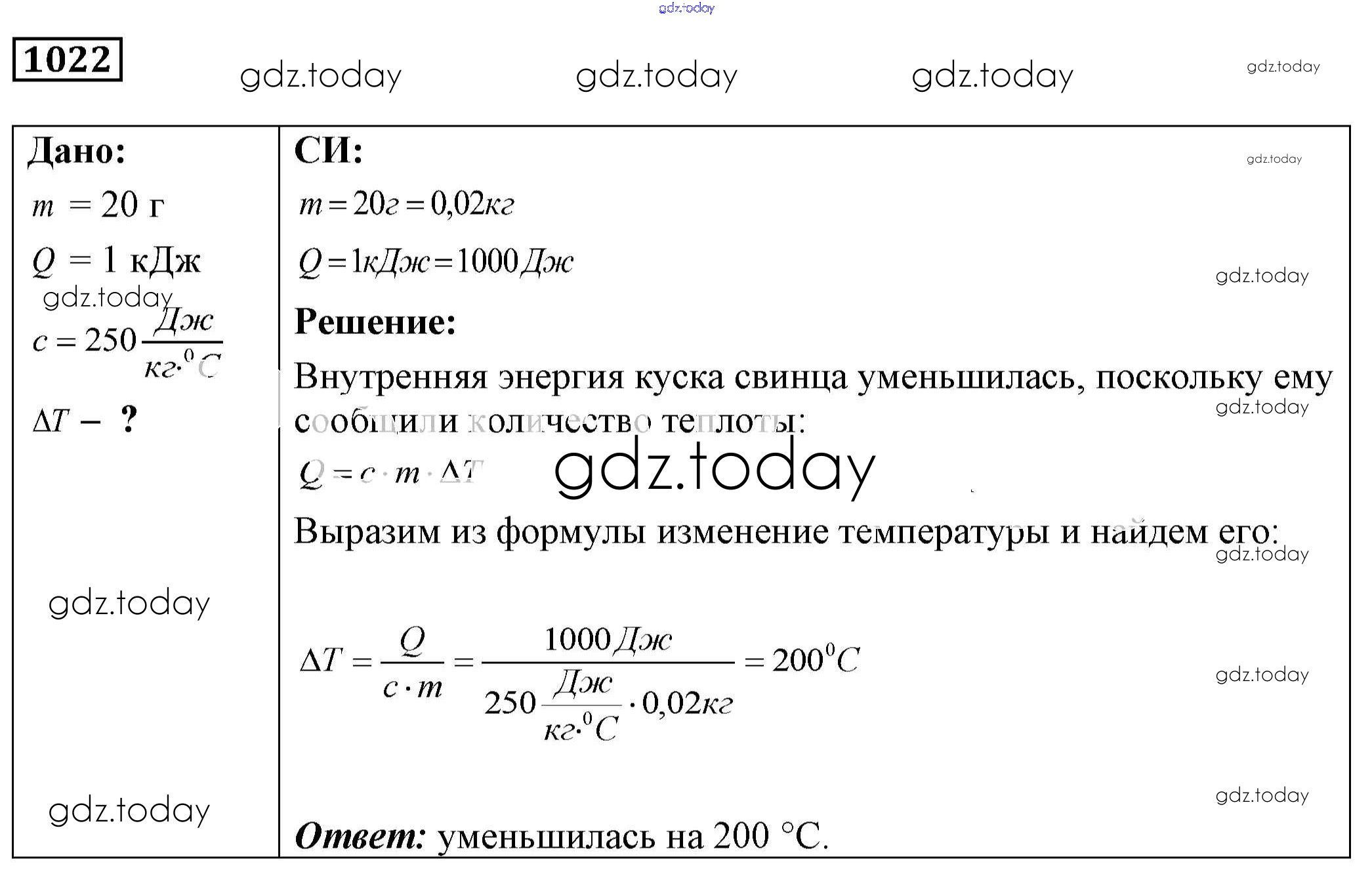 На страницах сайта gdz.today вы найдете учебный и вспомогательный материал, направленный на улучшения знаний школьной программы. ГДЗ - онлайн мир знаний Решение к заданиям 1022 Сборнику задач по Физике для 7-9 класса Лукашик, Иванова Просвещение 2011