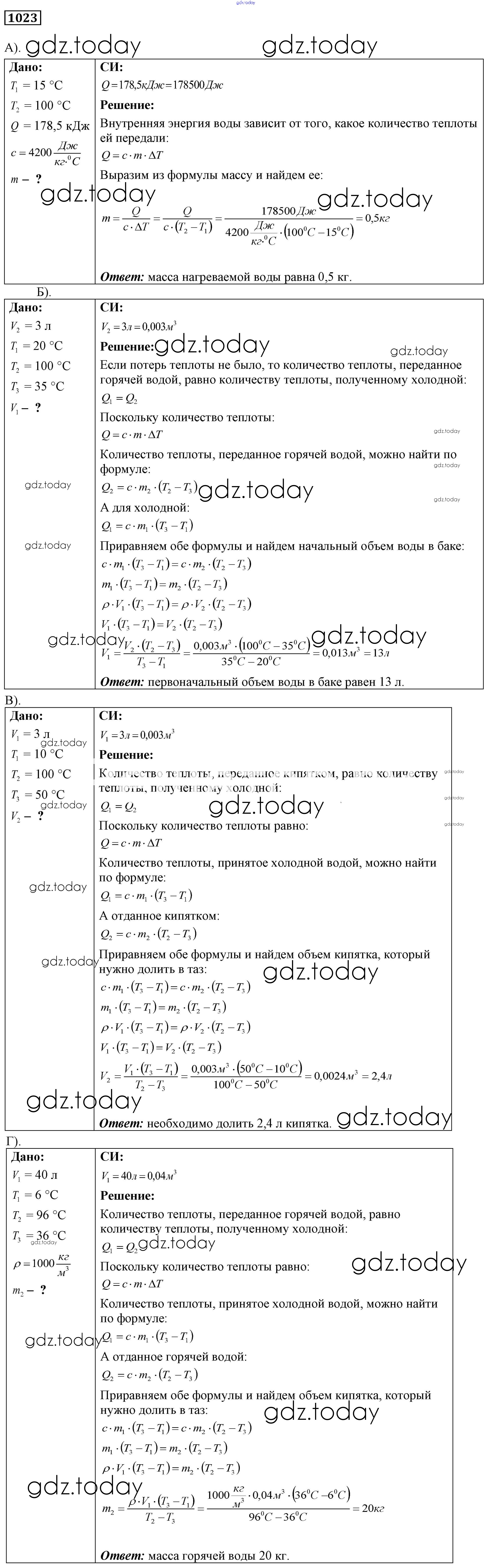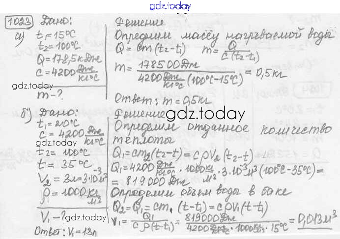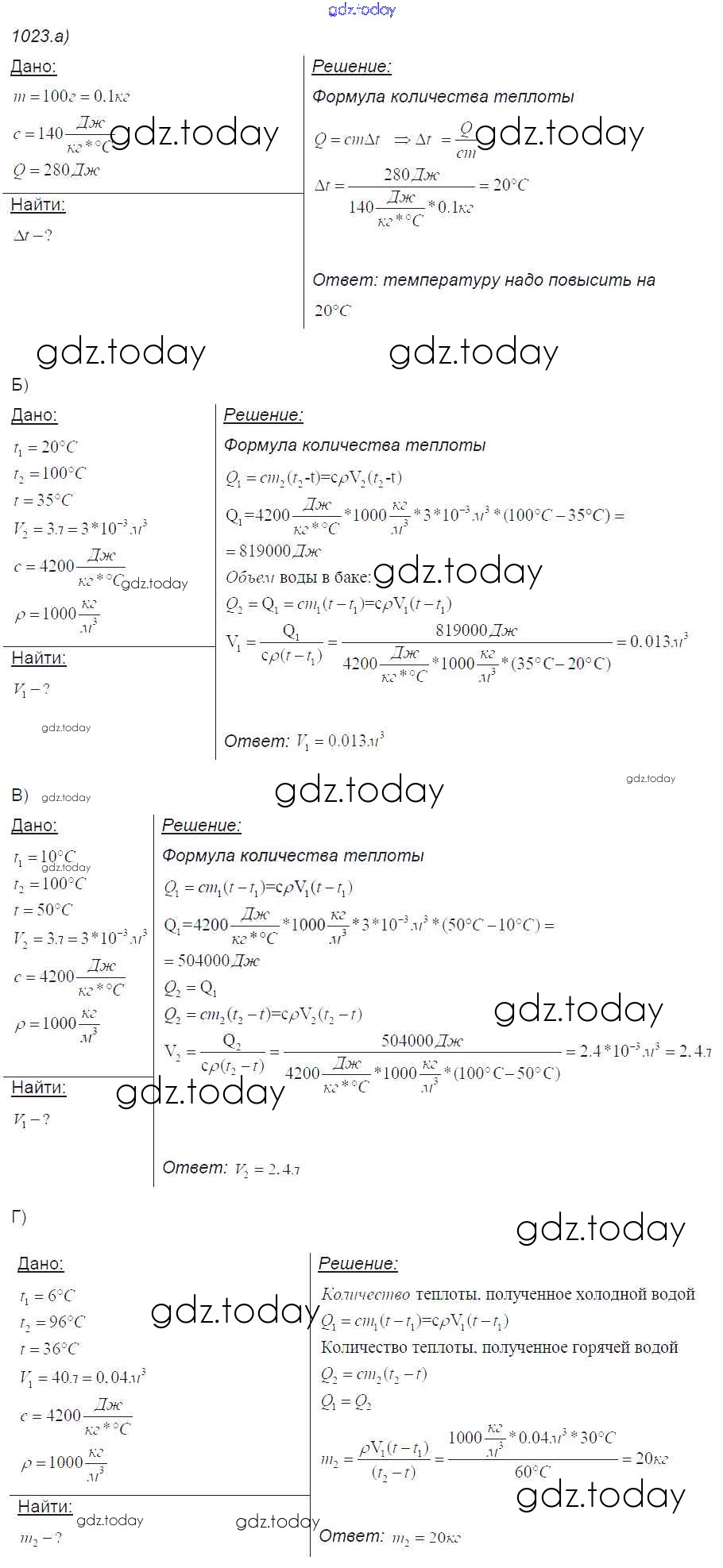 На страницах сайта gdz.today вы найдете учебный и вспомогательный материал, направленный на улучшения знаний школьной программы. ГДЗ - онлайн мир знаний Решение к заданиям 1023 Сборнику задач по Физике для 7-9 класса Лукашик, Иванова Просвещение 2011