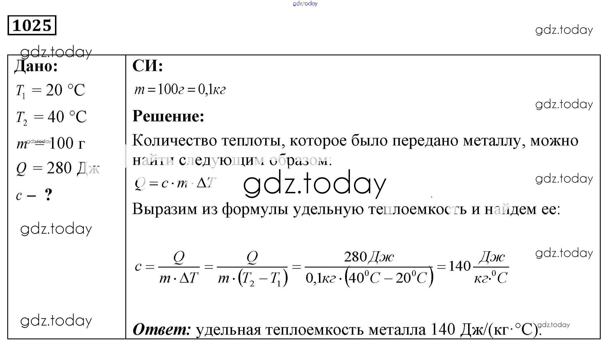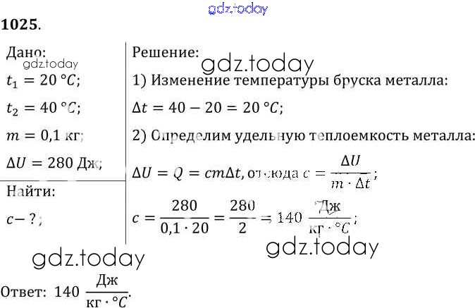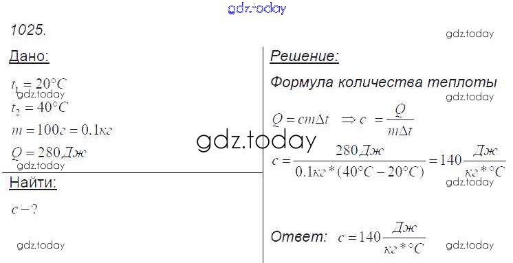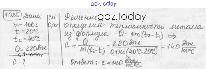 На страницах сайта gdz.today вы найдете учебный и вспомогательный материал, направленный на улучшения знаний школьной программы. ГДЗ - онлайн мир знаний Решение к заданиям 1025 Сборнику задач по Физике для 7-9 класса Лукашик, Иванова Просвещение 2011