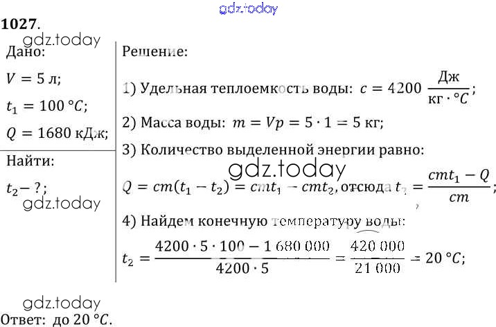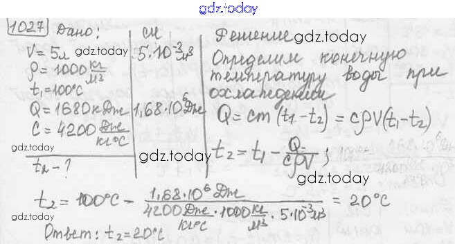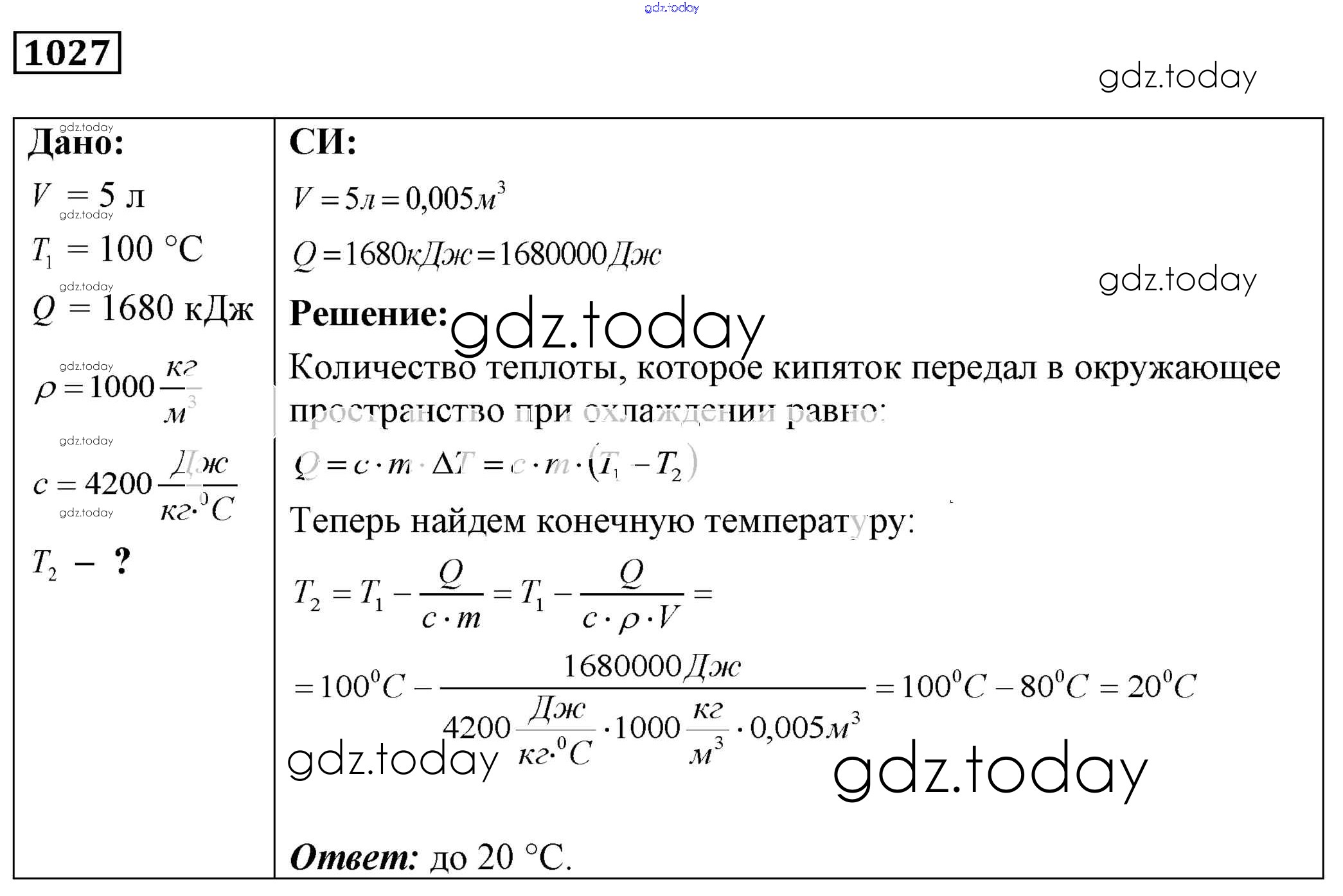 На страницах сайта gdz.today вы найдете учебный и вспомогательный материал, направленный на улучшения знаний школьной программы. ГДЗ - онлайн мир знаний Решение к заданиям 1027 Сборнику задач по Физике для 7-9 класса Лукашик, Иванова Просвещение 2011