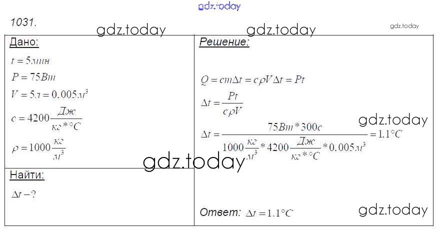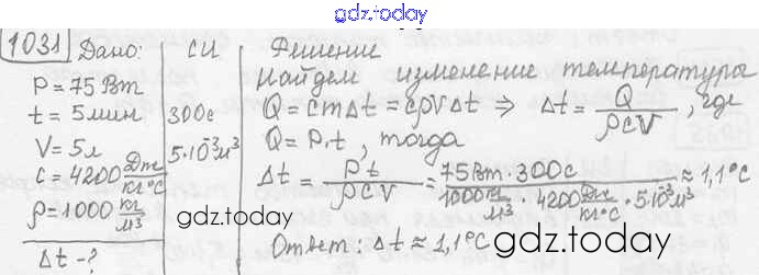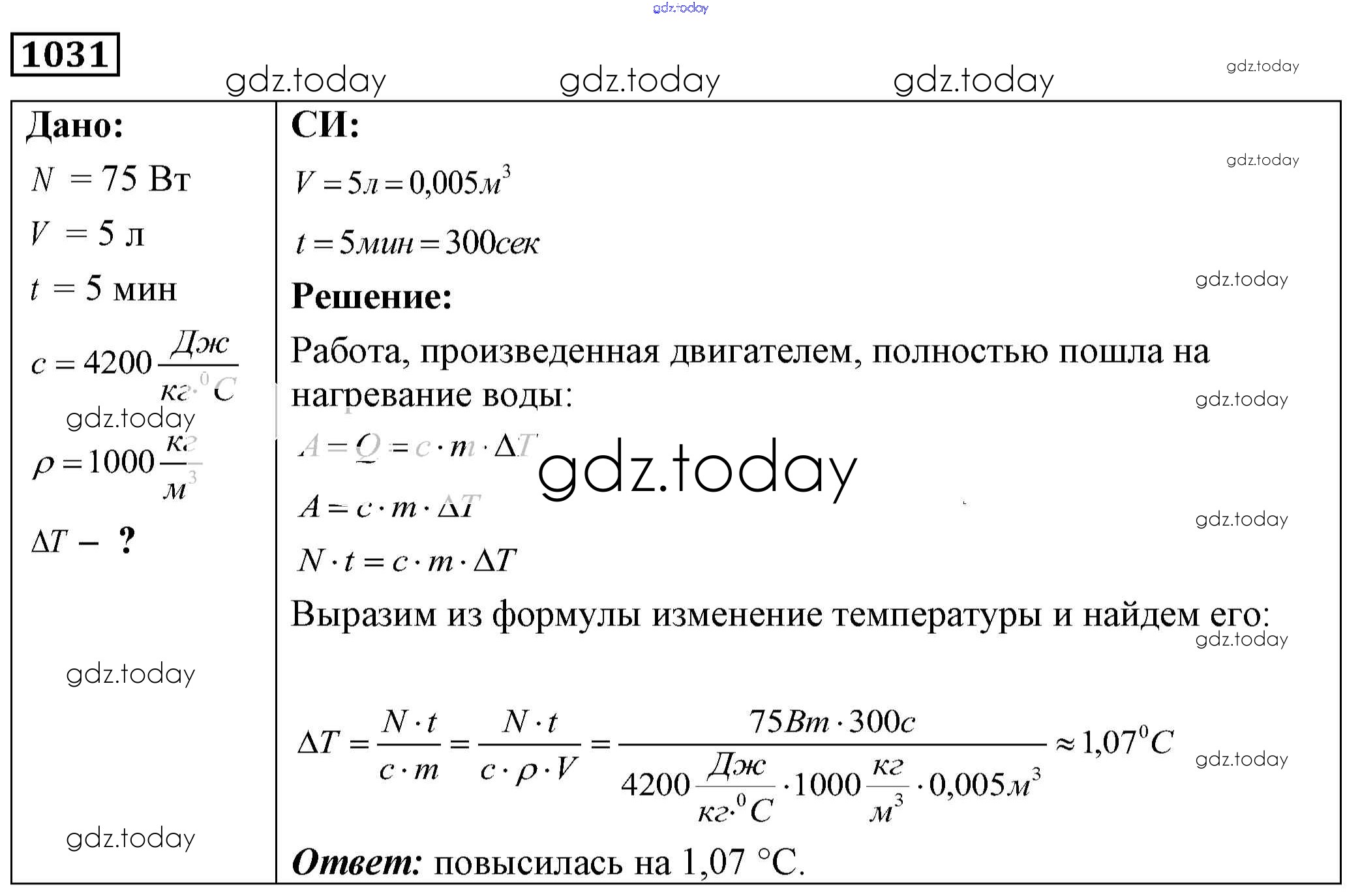 На страницах сайта gdz.today вы найдете учебный и вспомогательный материал, направленный на улучшения знаний школьной программы. ГДЗ - онлайн мир знаний Решение к заданиям 1031 Сборнику задач по Физике для 7-9 класса Лукашик, Иванова Просвещение 2011