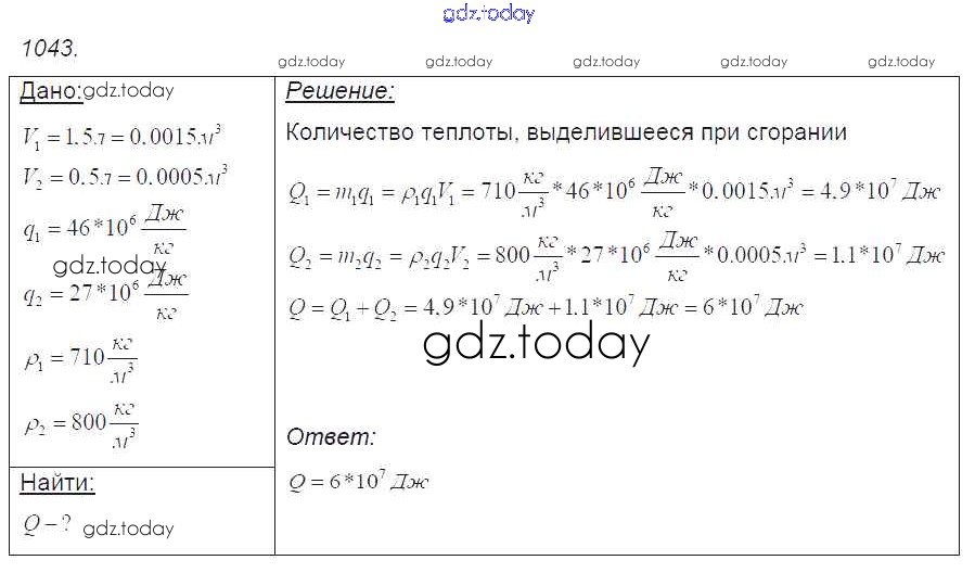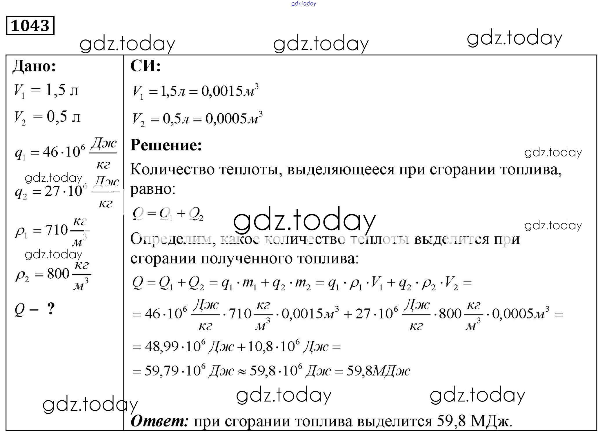 На страницах сайта gdz.today вы найдете учебный и вспомогательный материал, направленный на улучшения знаний школьной программы. ГДЗ - онлайн мир знаний Решение к заданиям 1043 Сборнику задач по Физике для 7-9 класса Лукашик, Иванова Просвещение 2011