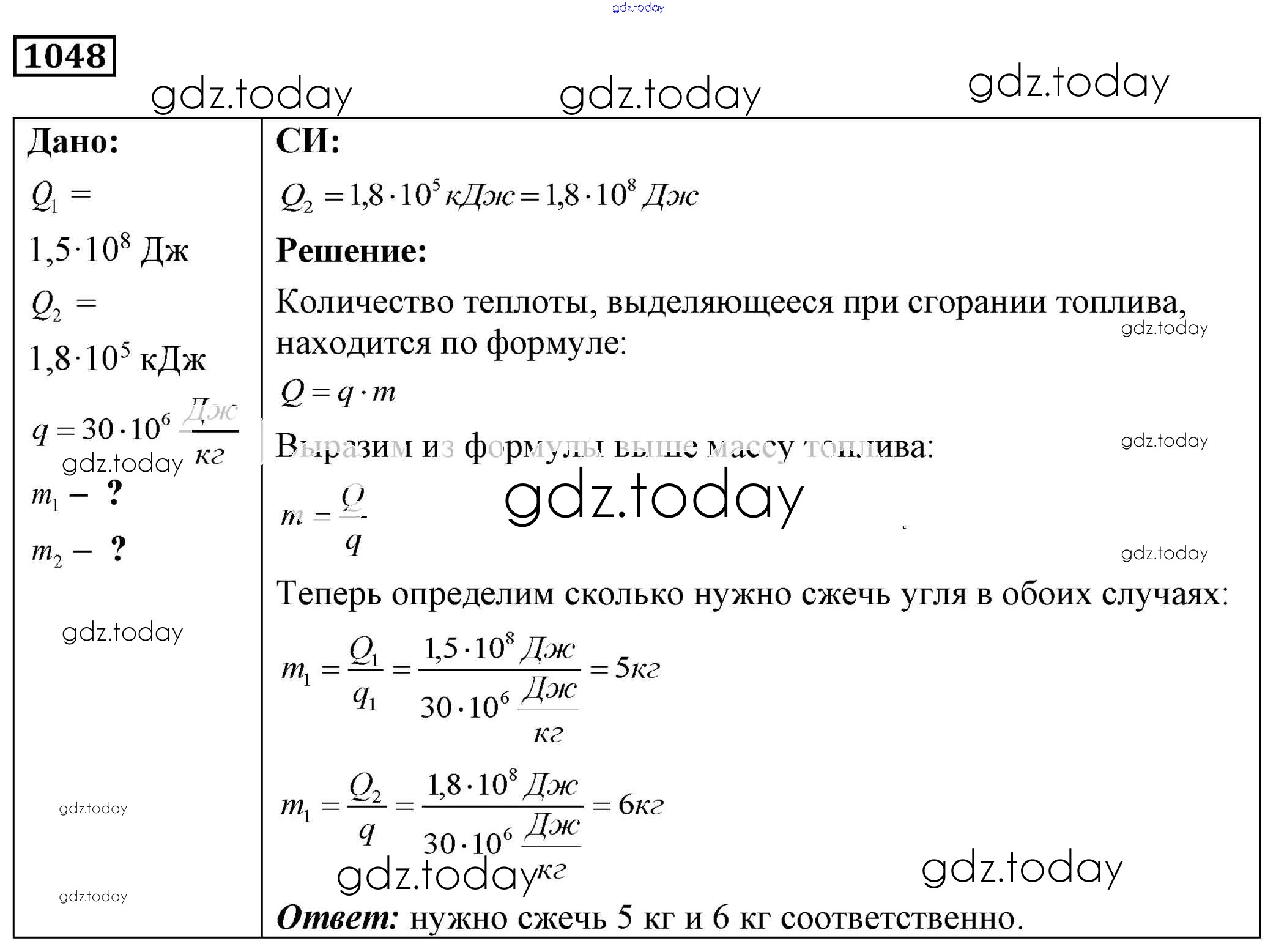 На страницах сайта gdz.today вы найдете учебный и вспомогательный материал, направленный на улучшения знаний школьной программы. ГДЗ - онлайн мир знаний Решение к заданиям 1048 Сборнику задач по Физике для 7-9 класса Лукашик, Иванова Просвещение 2011