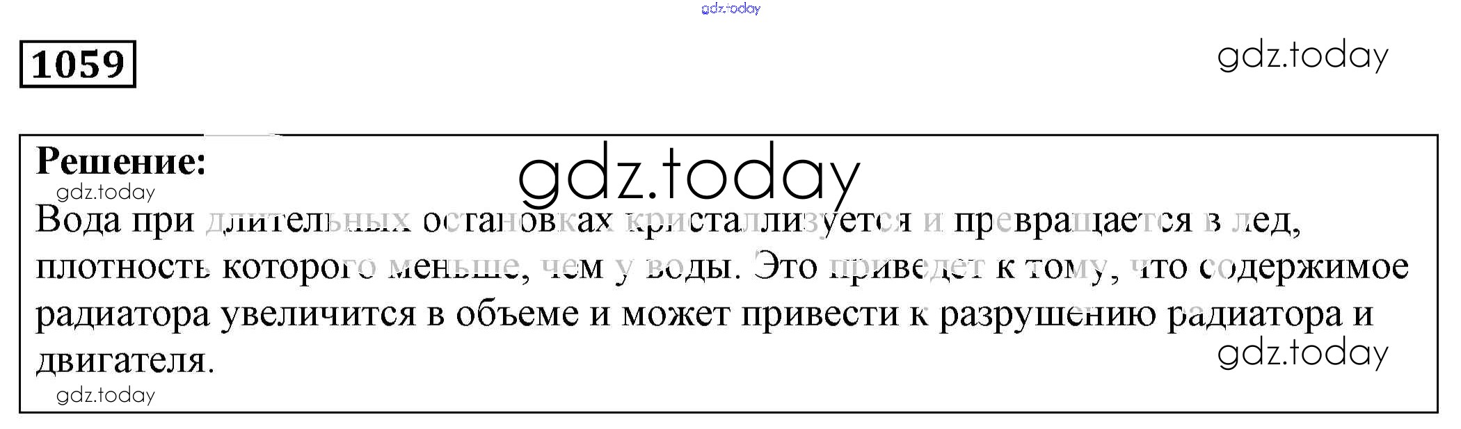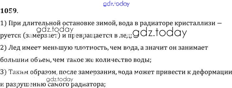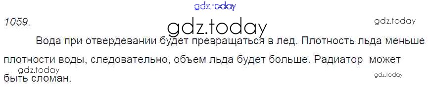 На страницах сайта gdz.today вы найдете учебный и вспомогательный материал, направленный на улучшения знаний школьной программы. ГДЗ - онлайн мир знаний Решение к заданиям 1059 Сборнику задач по Физике для 7-9 класса Лукашик, Иванова Просвещение 2011