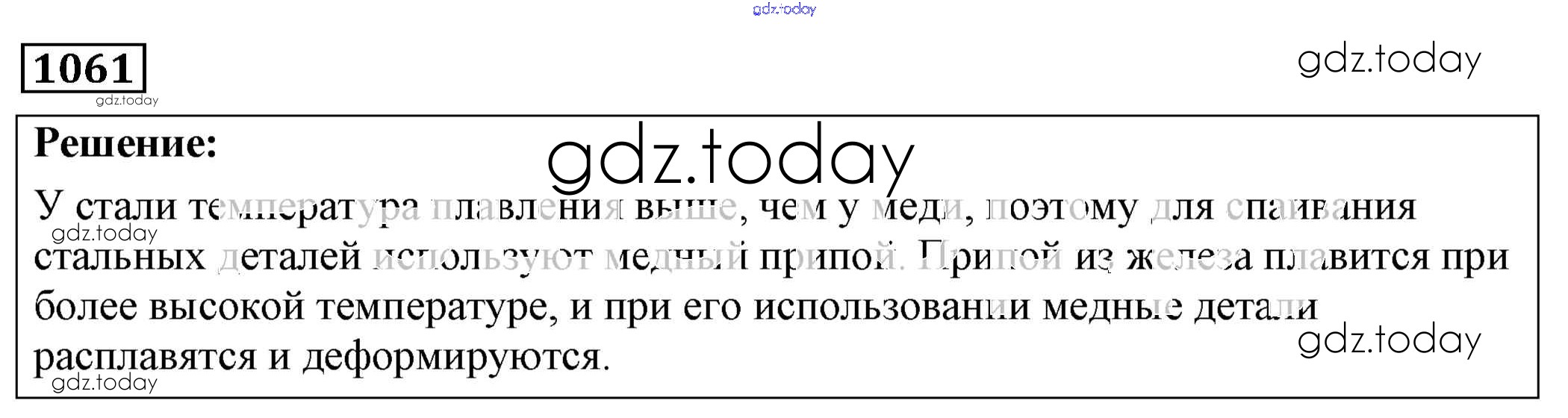 На страницах сайта gdz.today вы найдете учебный и вспомогательный материал, направленный на улучшения знаний школьной программы. ГДЗ - онлайн мир знаний Решение к заданиям 1061 Сборнику задач по Физике для 7-9 класса Лукашик, Иванова Просвещение 2011