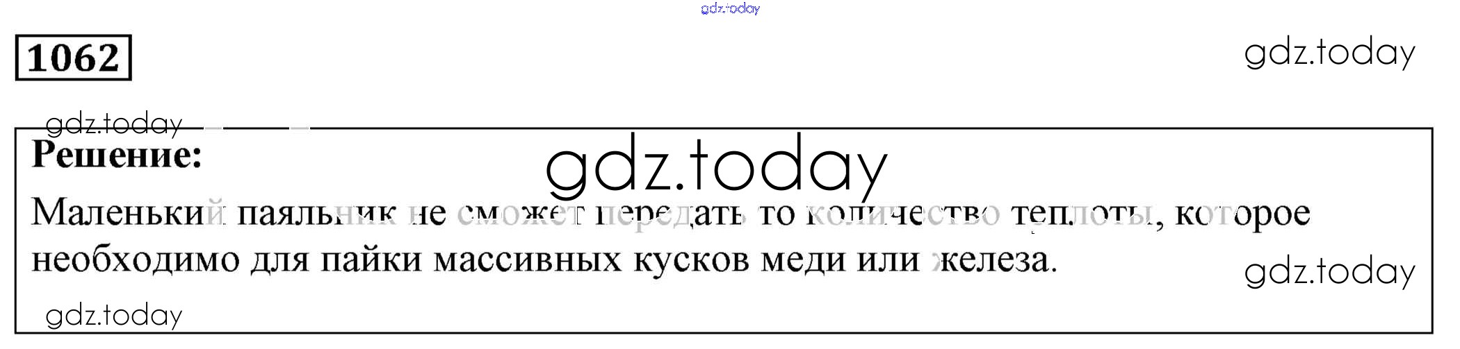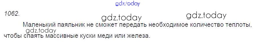 На страницах сайта gdz.today вы найдете учебный и вспомогательный материал, направленный на улучшения знаний школьной программы. ГДЗ - онлайн мир знаний Решение к заданиям 1062 Сборнику задач по Физике для 7-9 класса Лукашик, Иванова Просвещение 2011