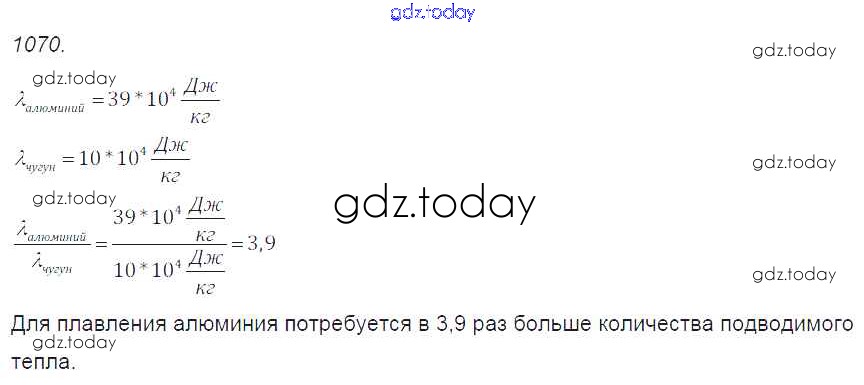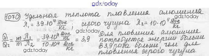 На страницах сайта gdz.today вы найдете учебный и вспомогательный материал, направленный на улучшения знаний школьной программы. ГДЗ - онлайн мир знаний Решение к заданиям 1070 Сборнику задач по Физике для 7-9 класса Лукашик, Иванова Просвещение 2011