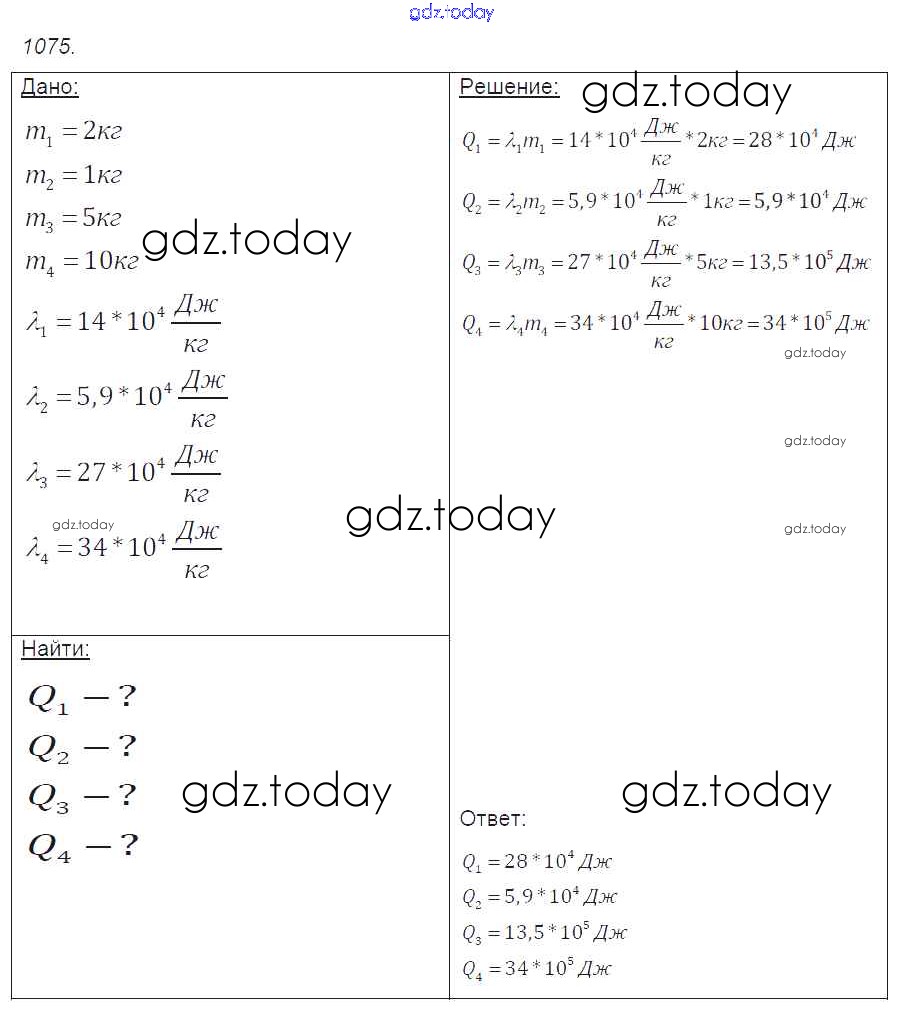 На страницах сайта gdz.today вы найдете учебный и вспомогательный материал, направленный на улучшения знаний школьной программы. ГДЗ - онлайн мир знаний Решение к заданиям 1075 Сборнику задач по Физике для 7-9 класса Лукашик, Иванова Просвещение 2011