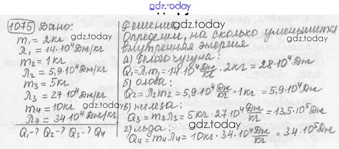 Ответы к Решение к заданиям 1075 Сборнику задач по Физике для 7-9 класса Лукашик, Иванова Просвещение 2011