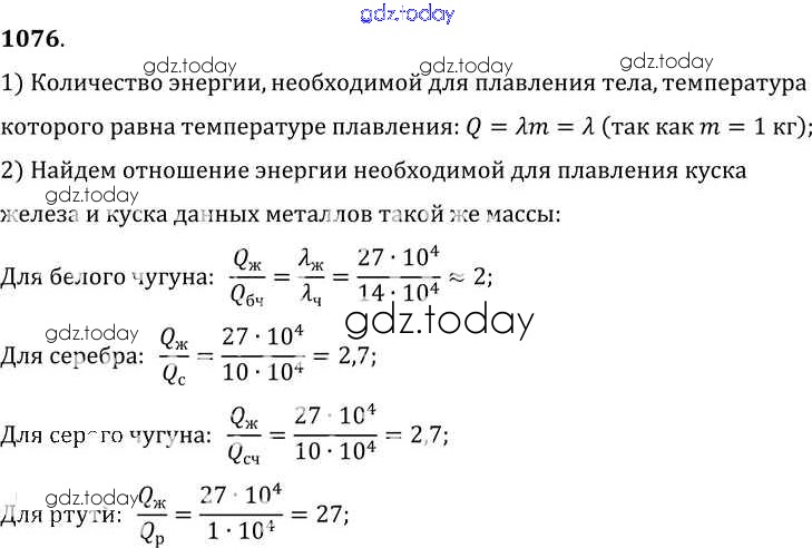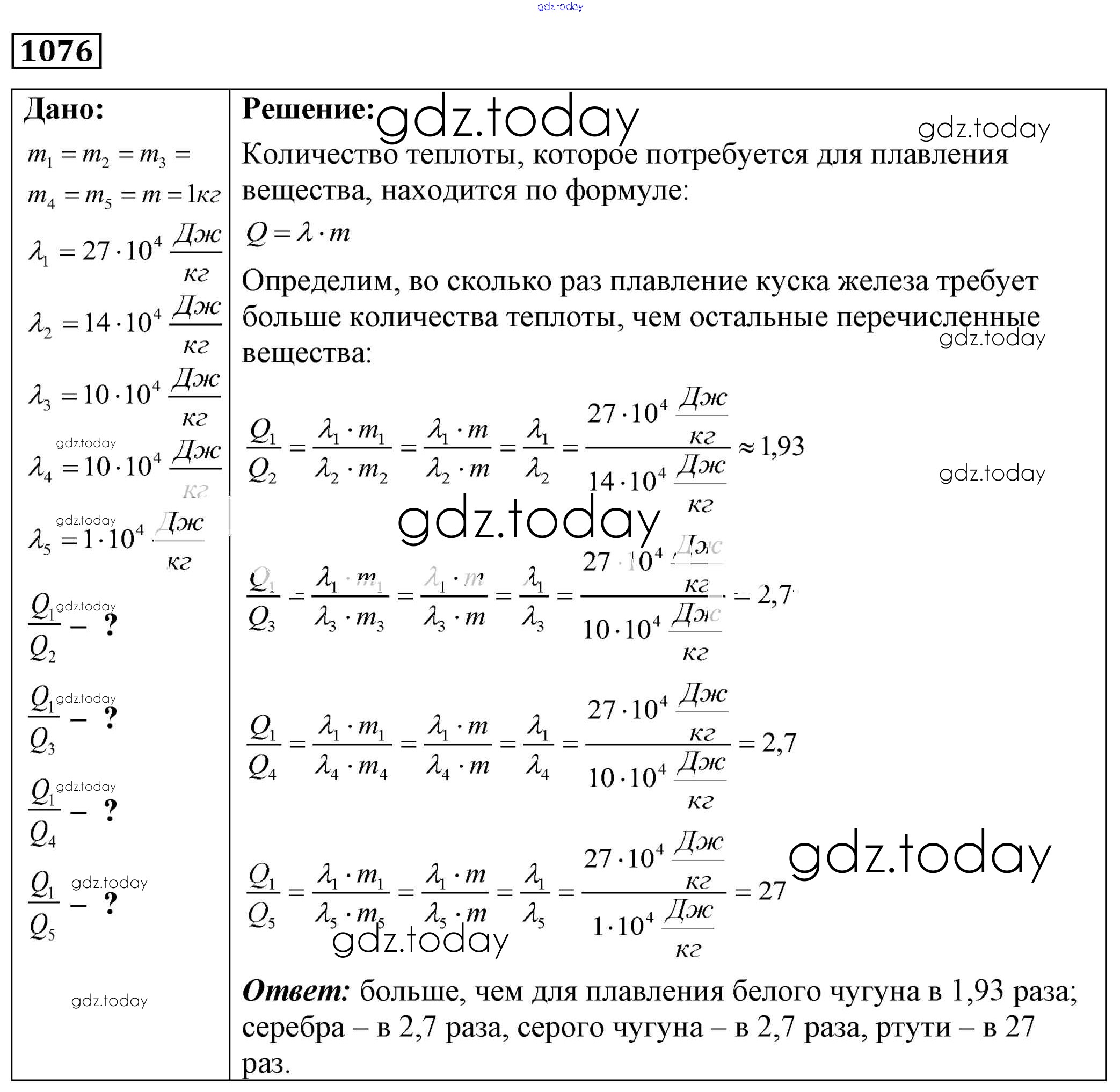 На страницах сайта gdz.today вы найдете учебный и вспомогательный материал, направленный на улучшения знаний школьной программы. ГДЗ - онлайн мир знаний Решение к заданиям 1076 Сборнику задач по Физике для 7-9 класса Лукашик, Иванова Просвещение 2011