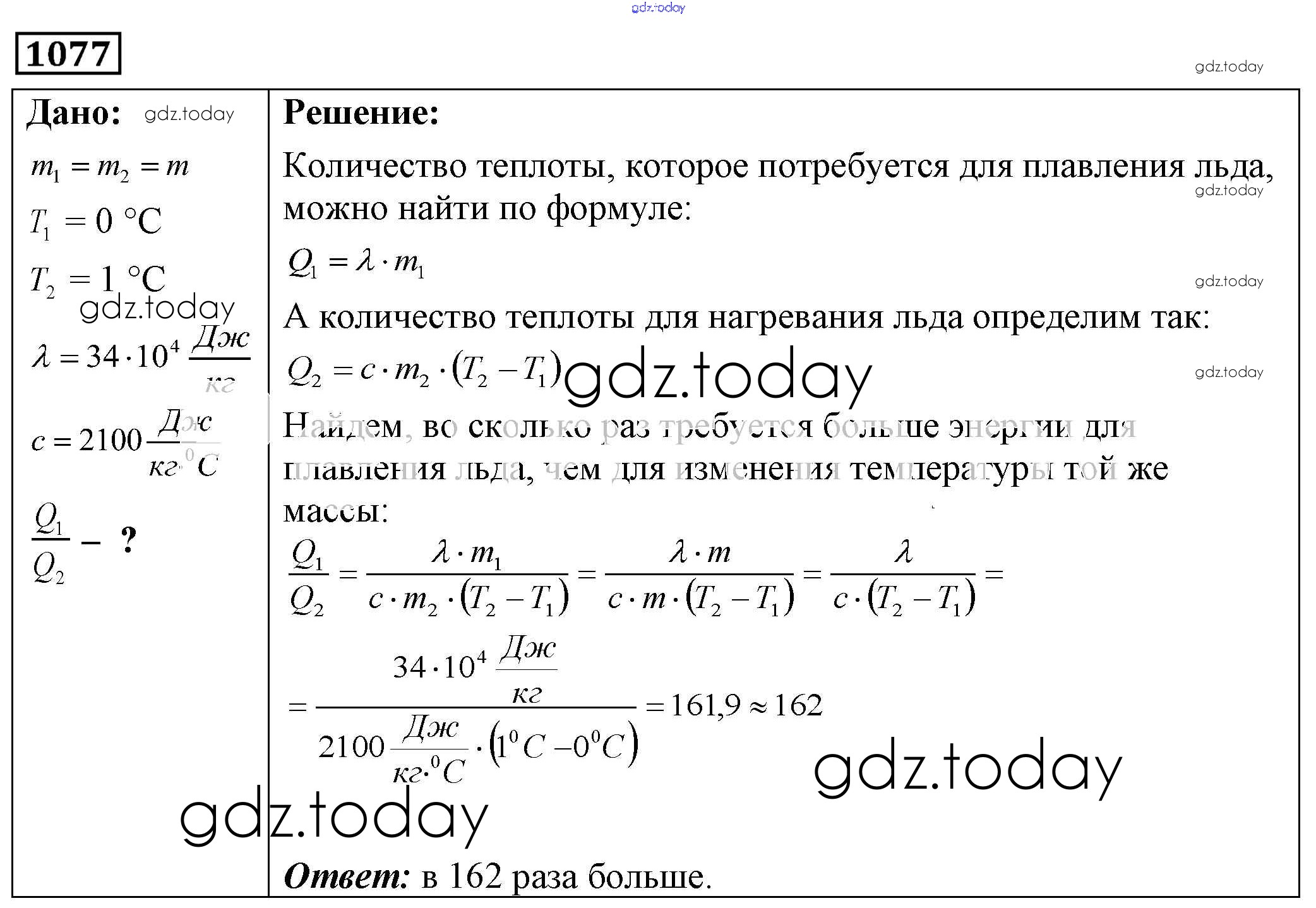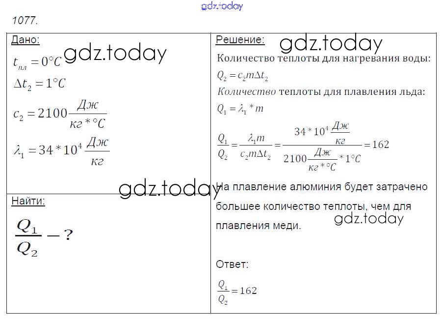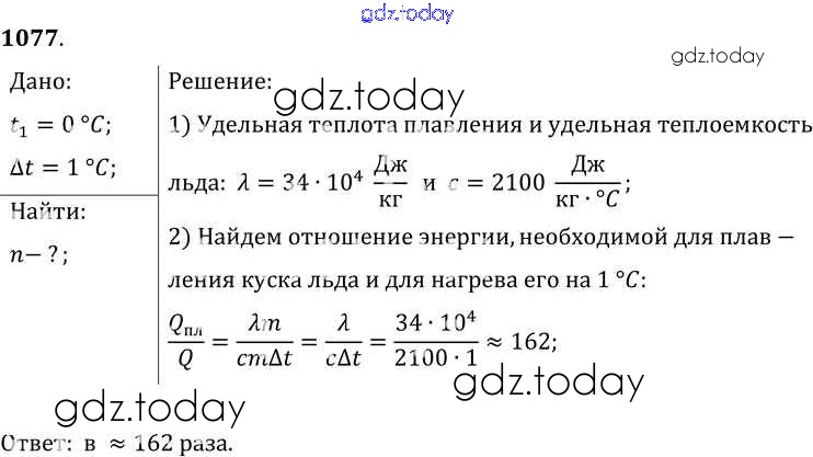 На страницах сайта gdz.today вы найдете учебный и вспомогательный материал, направленный на улучшения знаний школьной программы. ГДЗ - онлайн мир знаний Решение к заданиям 1077 Сборнику задач по Физике для 7-9 класса Лукашик, Иванова Просвещение 2011