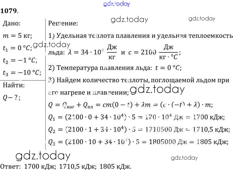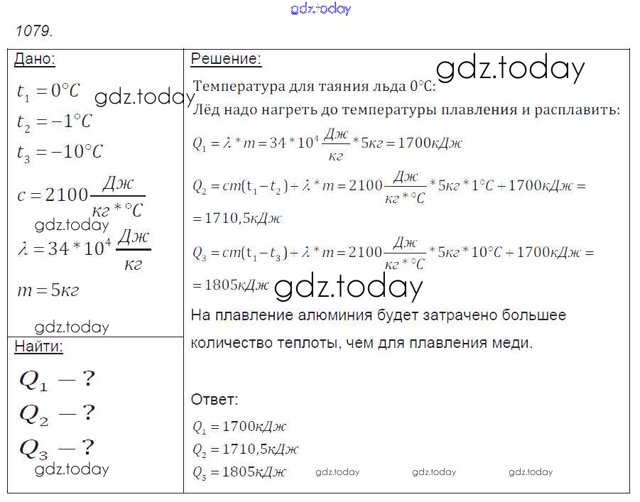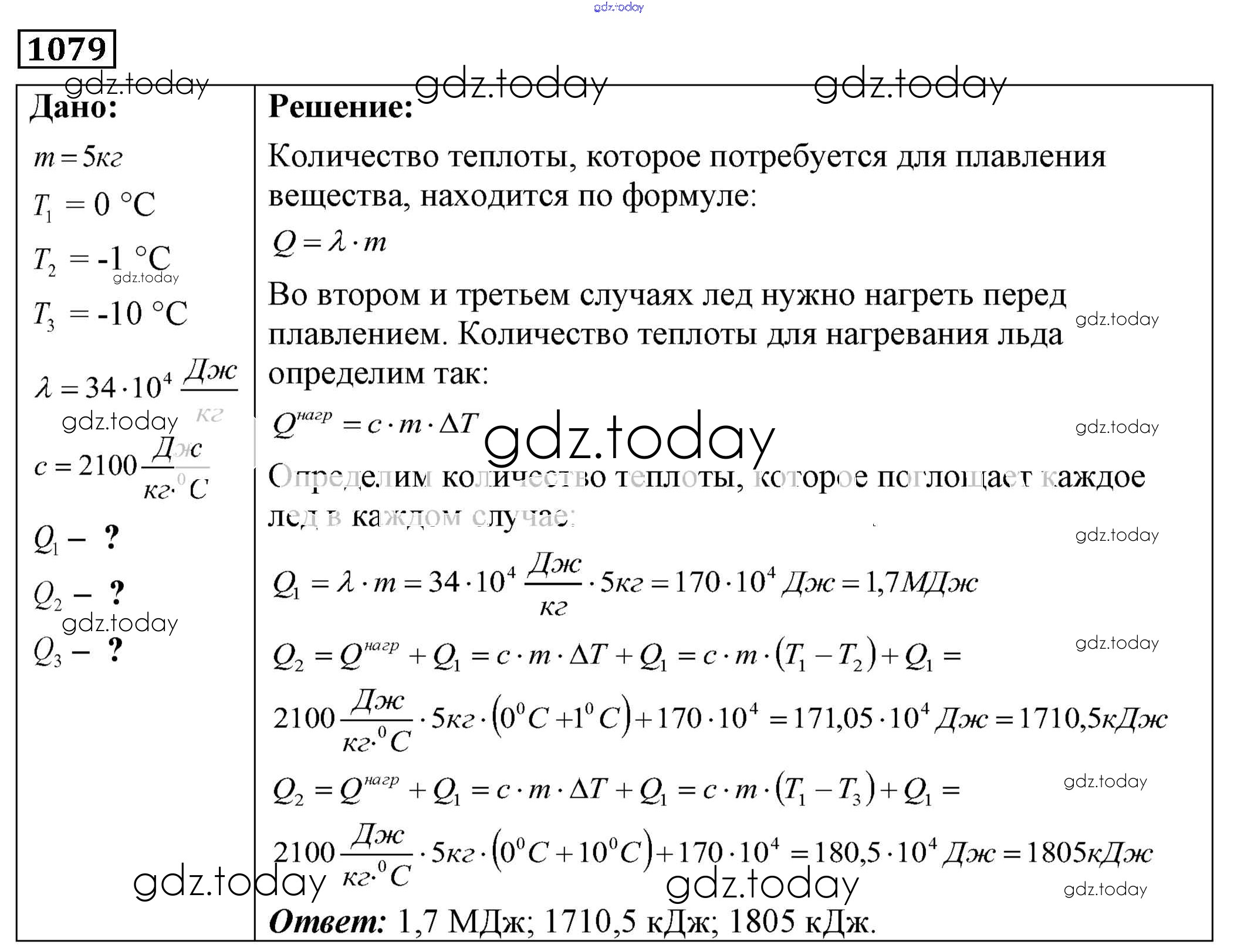На страницах сайта gdz.today вы найдете учебный и вспомогательный материал, направленный на улучшения знаний школьной программы. ГДЗ - онлайн мир знаний Решение к заданиям 1079 Сборнику задач по Физике для 7-9 класса Лукашик, Иванова Просвещение 2011