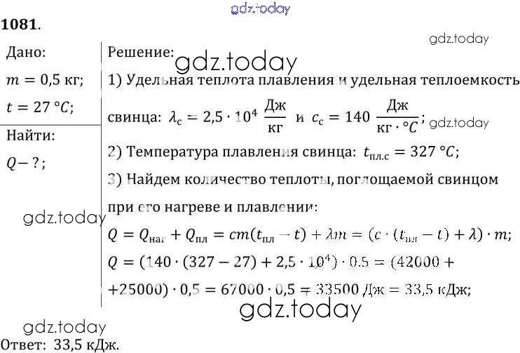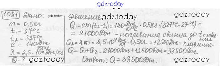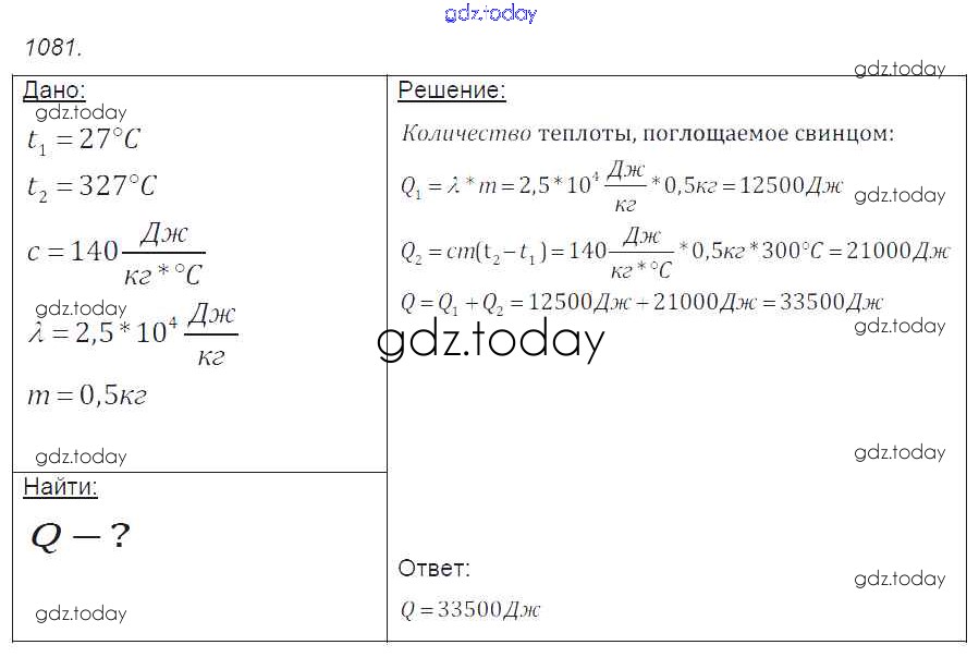 На страницах сайта gdz.today вы найдете учебный и вспомогательный материал, направленный на улучшения знаний школьной программы. ГДЗ - онлайн мир знаний Решение к заданиям 1081 Сборнику задач по Физике для 7-9 класса Лукашик, Иванова Просвещение 2011