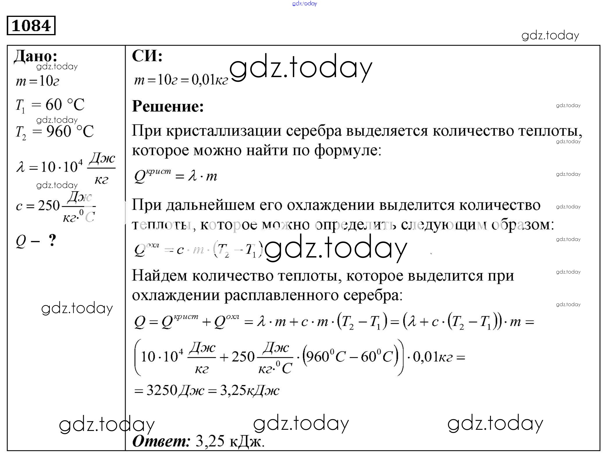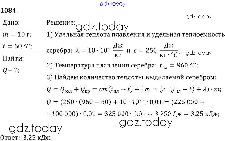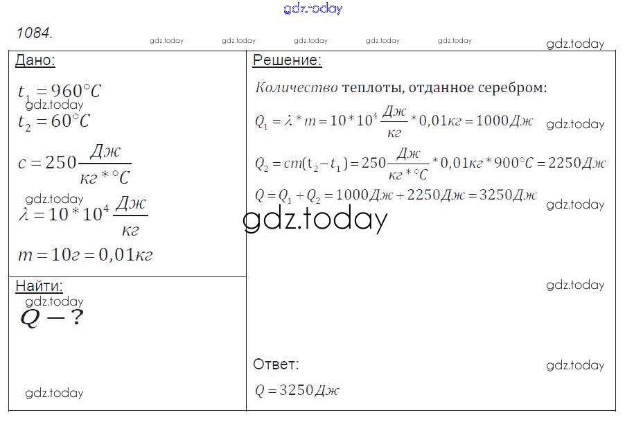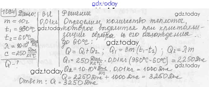 На страницах сайта gdz.today вы найдете учебный и вспомогательный материал, направленный на улучшения знаний школьной программы. ГДЗ - онлайн мир знаний Решение к заданиям 1084 Сборнику задач по Физике для 7-9 класса Лукашик, Иванова Просвещение 2011