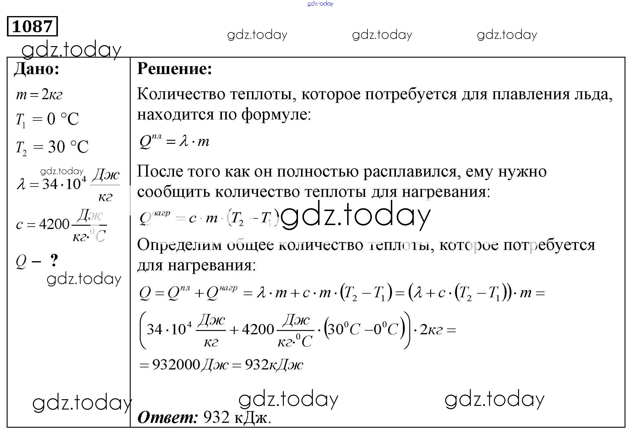 На страницах сайта gdz.today вы найдете учебный и вспомогательный материал, направленный на улучшения знаний школьной программы. ГДЗ - онлайн мир знаний Решение к заданиям 1087 Сборнику задач по Физике для 7-9 класса Лукашик, Иванова Просвещение 2011