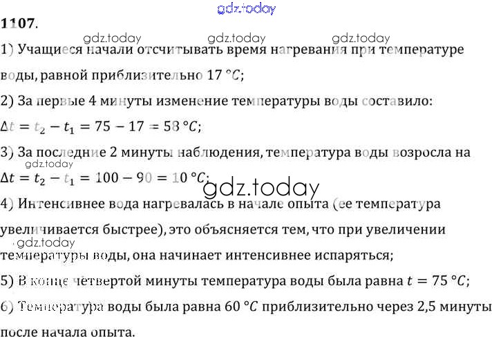 На страницах сайта gdz.today вы найдете учебный и вспомогательный материал, направленный на улучшения знаний школьной программы. ГДЗ - онлайн мир знаний Решение к заданиям 1107 Сборнику задач по Физике для 7-9 класса Лукашик, Иванова Просвещение 2011