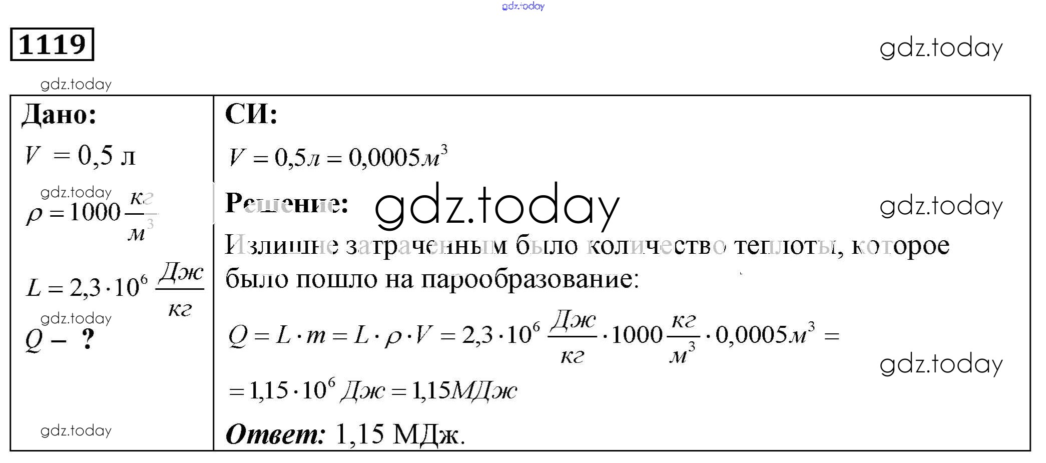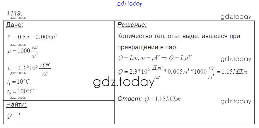На страницах сайта gdz.today вы найдете учебный и вспомогательный материал, направленный на улучшения знаний школьной программы. ГДЗ - онлайн мир знаний Решение к заданиям 1119 Сборнику задач по Физике для 7-9 класса Лукашик, Иванова Просвещение 2011