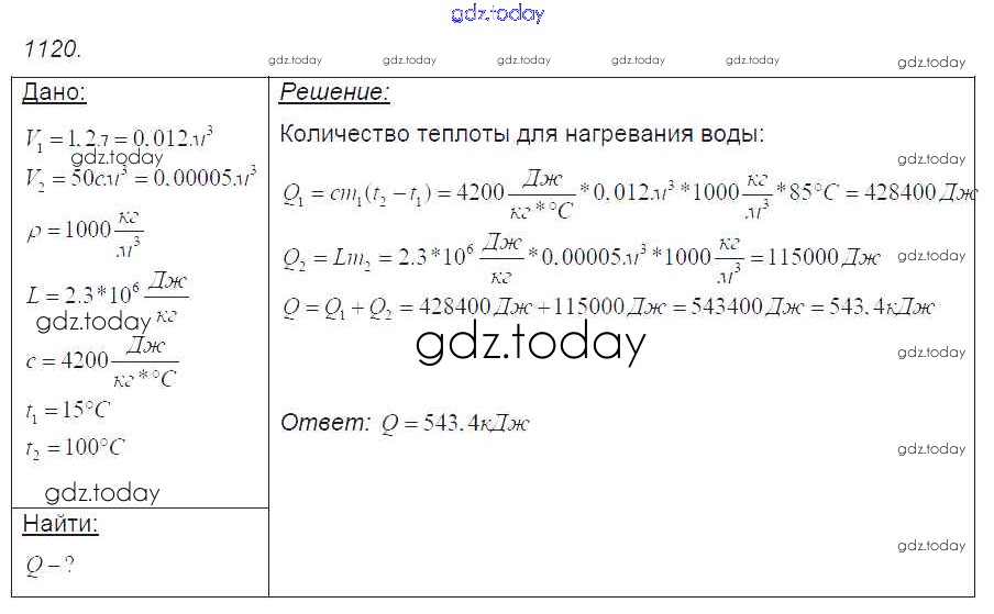 На страницах сайта gdz.today вы найдете учебный и вспомогательный материал, направленный на улучшения знаний школьной программы. ГДЗ - онлайн мир знаний Решение к заданиям 1120 Сборнику задач по Физике для 7-9 класса Лукашик, Иванова Просвещение 2011