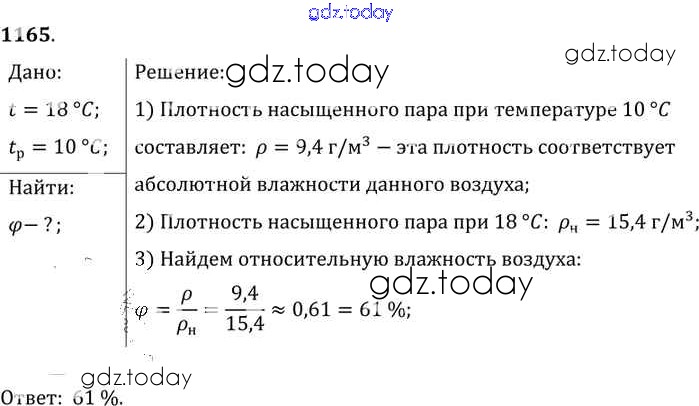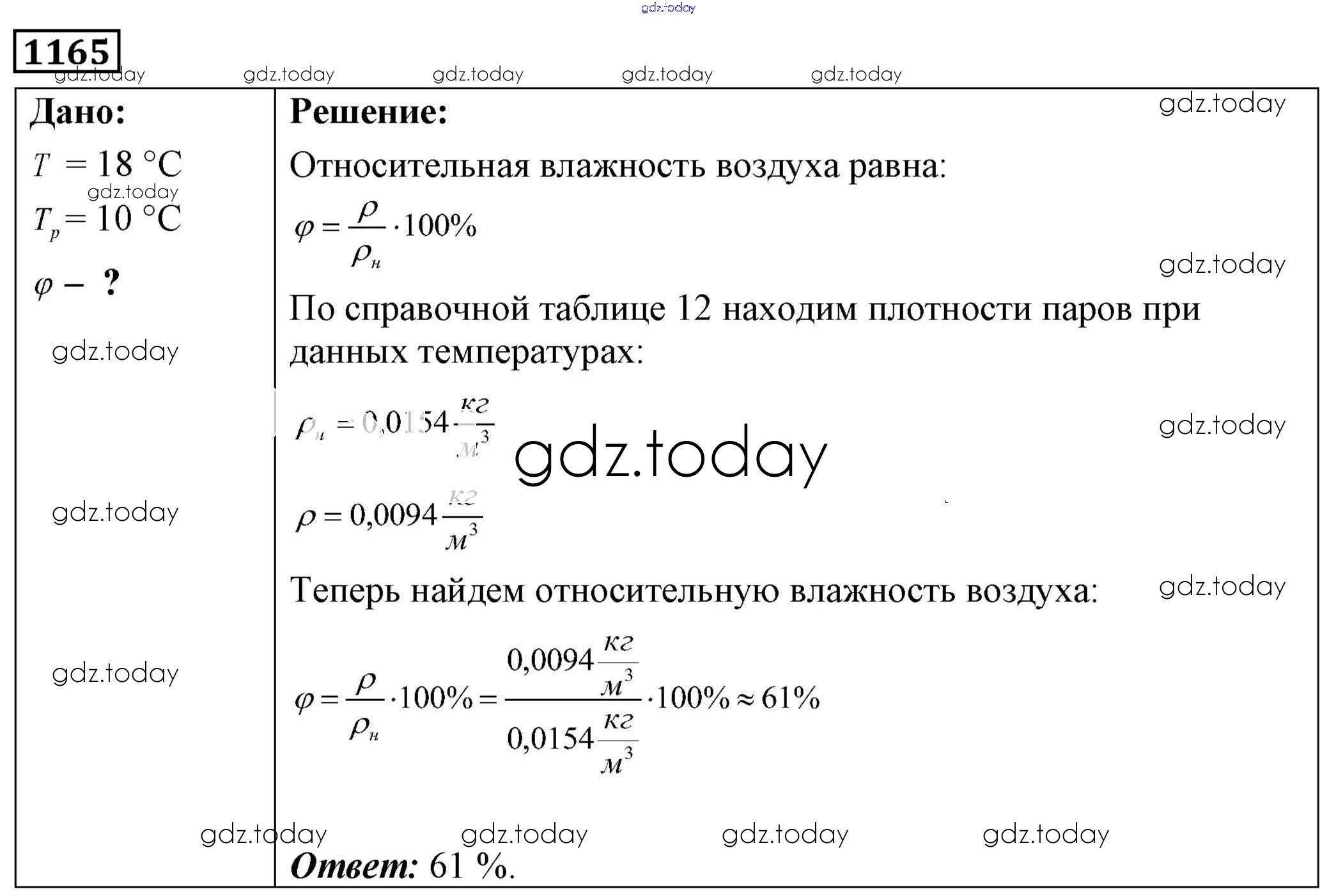 На страницах сайта gdz.today вы найдете учебный и вспомогательный материал, направленный на улучшения знаний школьной программы. ГДЗ - онлайн мир знаний Решение к заданиям 1165 Сборнику задач по Физике для 7-9 класса Лукашик, Иванова Просвещение 2011