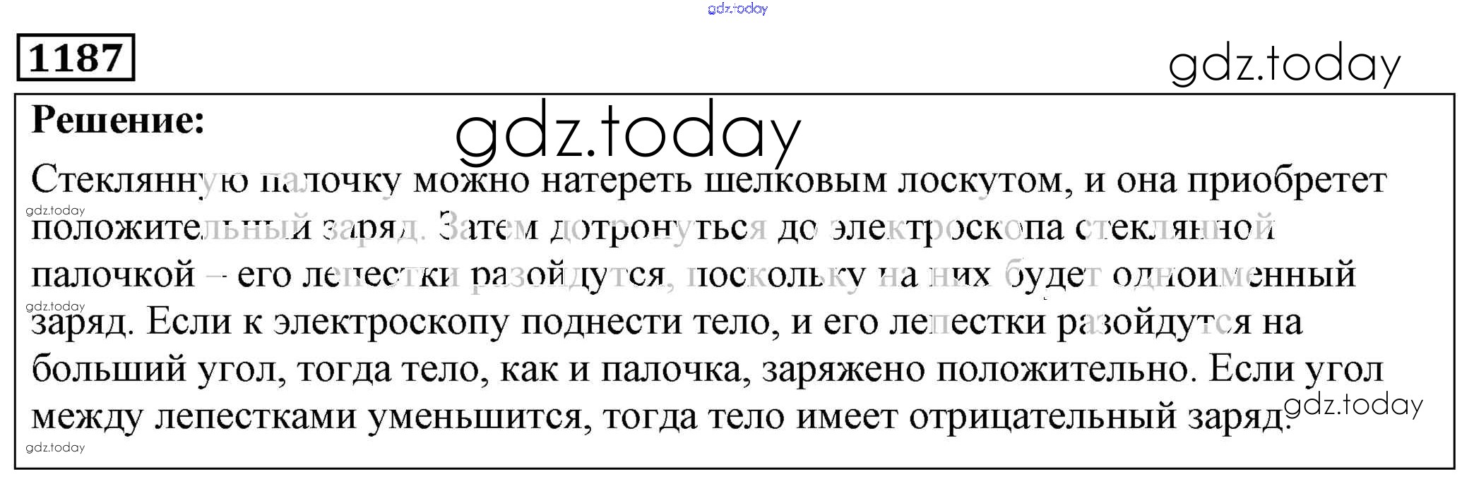 На страницах сайта gdz.today вы найдете учебный и вспомогательный материал, направленный на улучшения знаний школьной программы. ГДЗ - онлайн мир знаний Решение к заданиям 1187 Сборнику задач по Физике для 7-9 класса Лукашик, Иванова Просвещение 2011