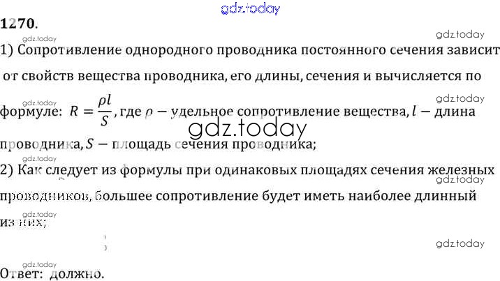 На страницах сайта gdz.today вы найдете учебный и вспомогательный материал, направленный на улучшения знаний школьной программы. ГДЗ - онлайн мир знаний Решение к заданиям 1270 Сборнику задач по Физике для 7-9 класса Лукашик, Иванова Просвещение 2011