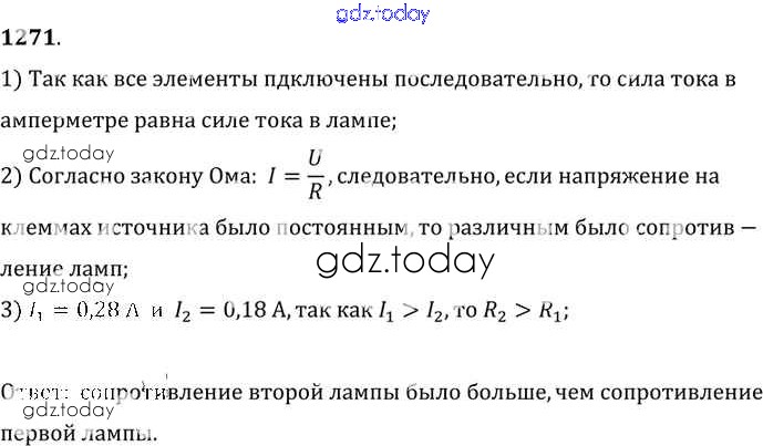 На страницах сайта gdz.today вы найдете учебный и вспомогательный материал, направленный на улучшения знаний школьной программы. ГДЗ - онлайн мир знаний Решение к заданиям 1271 Сборнику задач по Физике для 7-9 класса Лукашик, Иванова Просвещение 2011