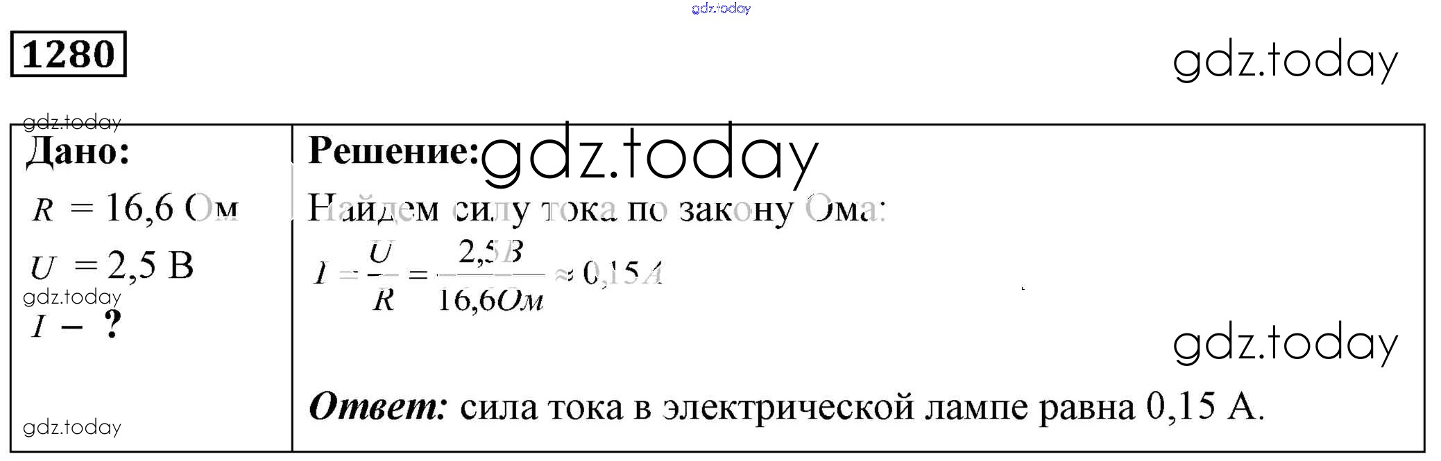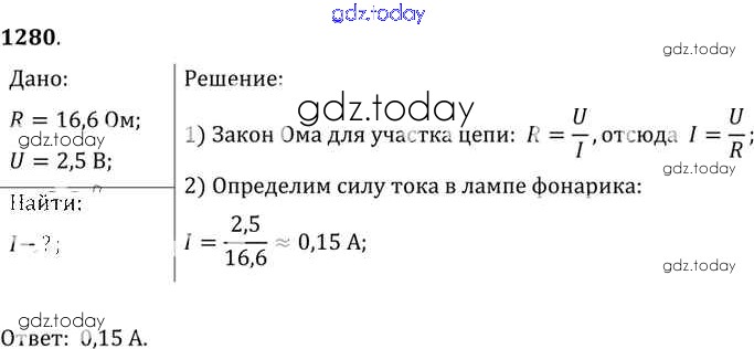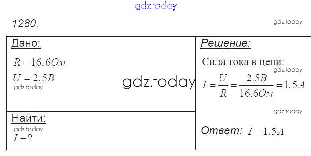 На страницах сайта gdz.today вы найдете учебный и вспомогательный материал, направленный на улучшения знаний школьной программы. ГДЗ - онлайн мир знаний Решение к заданиям 1280 Сборнику задач по Физике для 7-9 класса Лукашик, Иванова Просвещение 2011