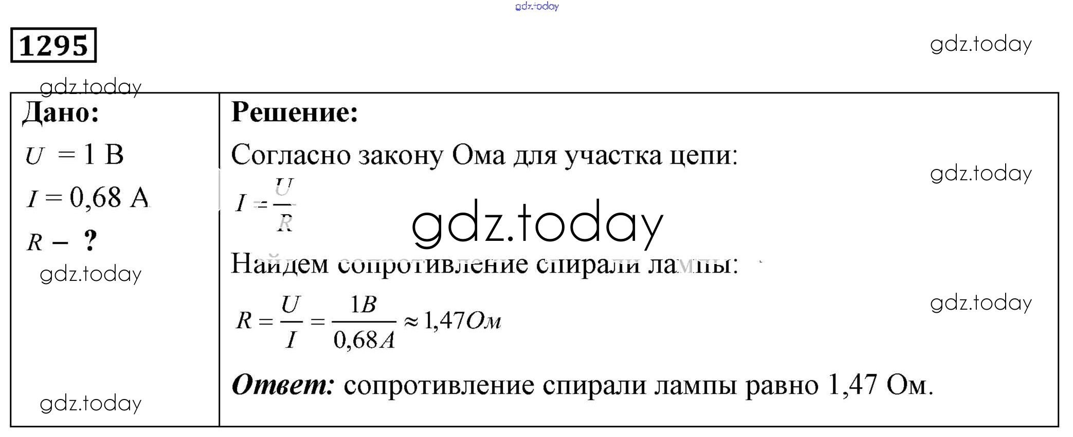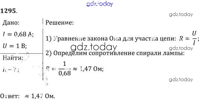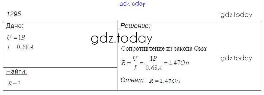 На страницах сайта gdz.today вы найдете учебный и вспомогательный материал, направленный на улучшения знаний школьной программы. ГДЗ - онлайн мир знаний Решение к заданиям 1295 Сборнику задач по Физике для 7-9 класса Лукашик, Иванова Просвещение 2011