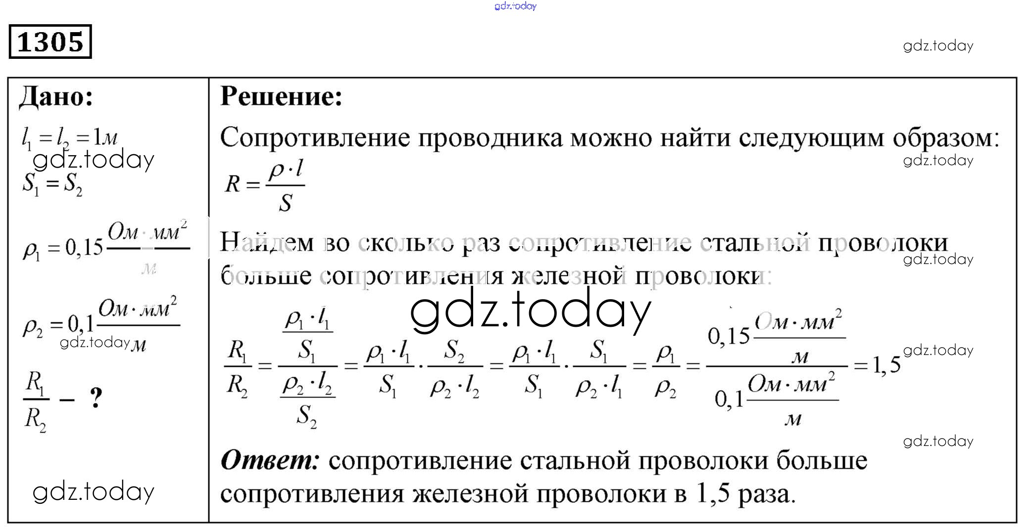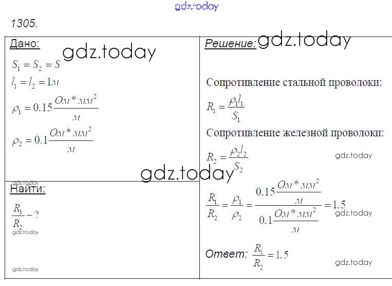 На страницах сайта gdz.today вы найдете учебный и вспомогательный материал, направленный на улучшения знаний школьной программы. ГДЗ - онлайн мир знаний Решение к заданиям 1305 Сборнику задач по Физике для 7-9 класса Лукашик, Иванова Просвещение 2011