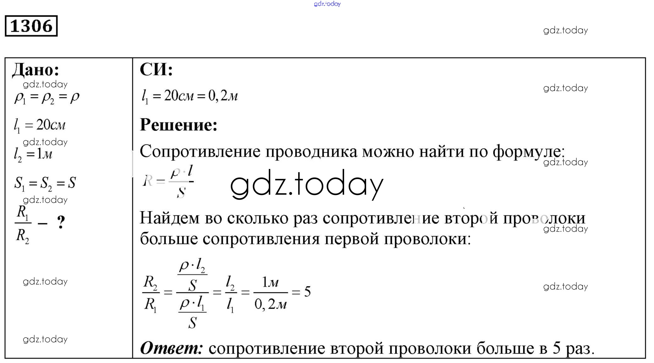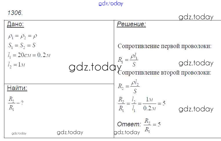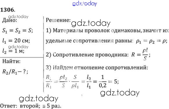 На страницах сайта gdz.today вы найдете учебный и вспомогательный материал, направленный на улучшения знаний школьной программы. ГДЗ - онлайн мир знаний Решение к заданиям 1306 Сборнику задач по Физике для 7-9 класса Лукашик, Иванова Просвещение 2011