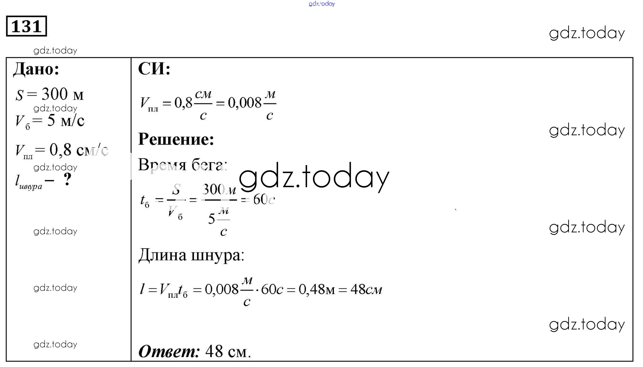 На страницах сайта gdz.today вы найдете учебный и вспомогательный материал, направленный на улучшения знаний школьной программы. ГДЗ - онлайн мир знаний Решение к заданиям 131 Сборнику задач по Физике для 7-9 класса Лукашик, Иванова Просвещение 2011