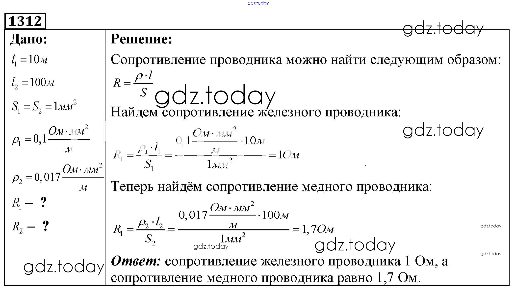 На страницах сайта gdz.today вы найдете учебный и вспомогательный материал, направленный на улучшения знаний школьной программы. ГДЗ - онлайн мир знаний Решение к заданиям 1312 Сборнику задач по Физике для 7-9 класса Лукашик, Иванова Просвещение 2011