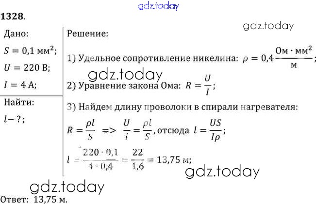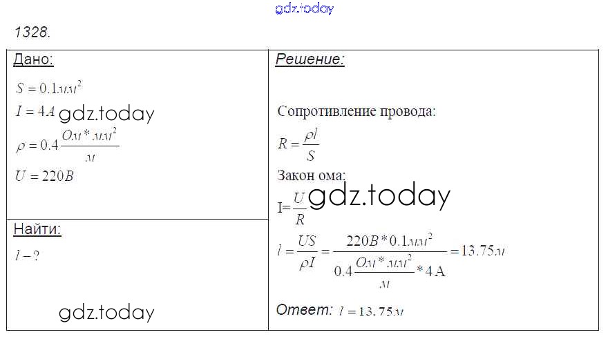 На страницах сайта gdz.today вы найдете учебный и вспомогательный материал, направленный на улучшения знаний школьной программы. ГДЗ - онлайн мир знаний Решение к заданиям 1328 Сборнику задач по Физике для 7-9 класса Лукашик, Иванова Просвещение 2011