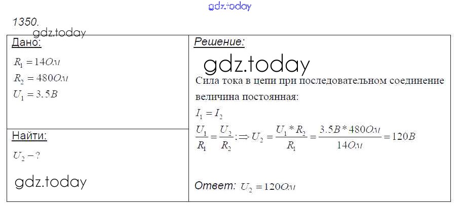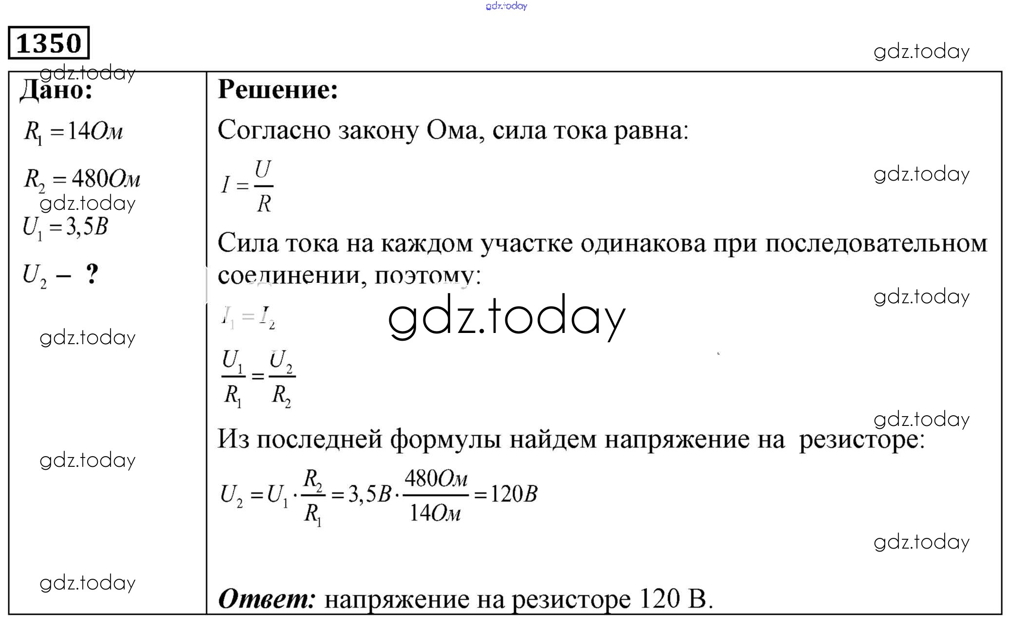 На страницах сайта gdz.today вы найдете учебный и вспомогательный материал, направленный на улучшения знаний школьной программы. ГДЗ - онлайн мир знаний Решение к заданиям 1350 Сборнику задач по Физике для 7-9 класса Лукашик, Иванова Просвещение 2011