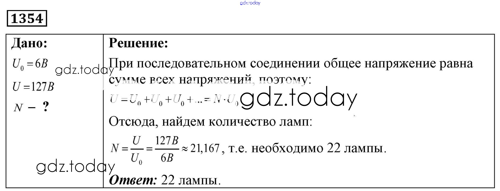 На страницах сайта gdz.today вы найдете учебный и вспомогательный материал, направленный на улучшения знаний школьной программы. ГДЗ - онлайн мир знаний Решение к заданиям 1354 Сборнику задач по Физике для 7-9 класса Лукашик, Иванова Просвещение 2011
