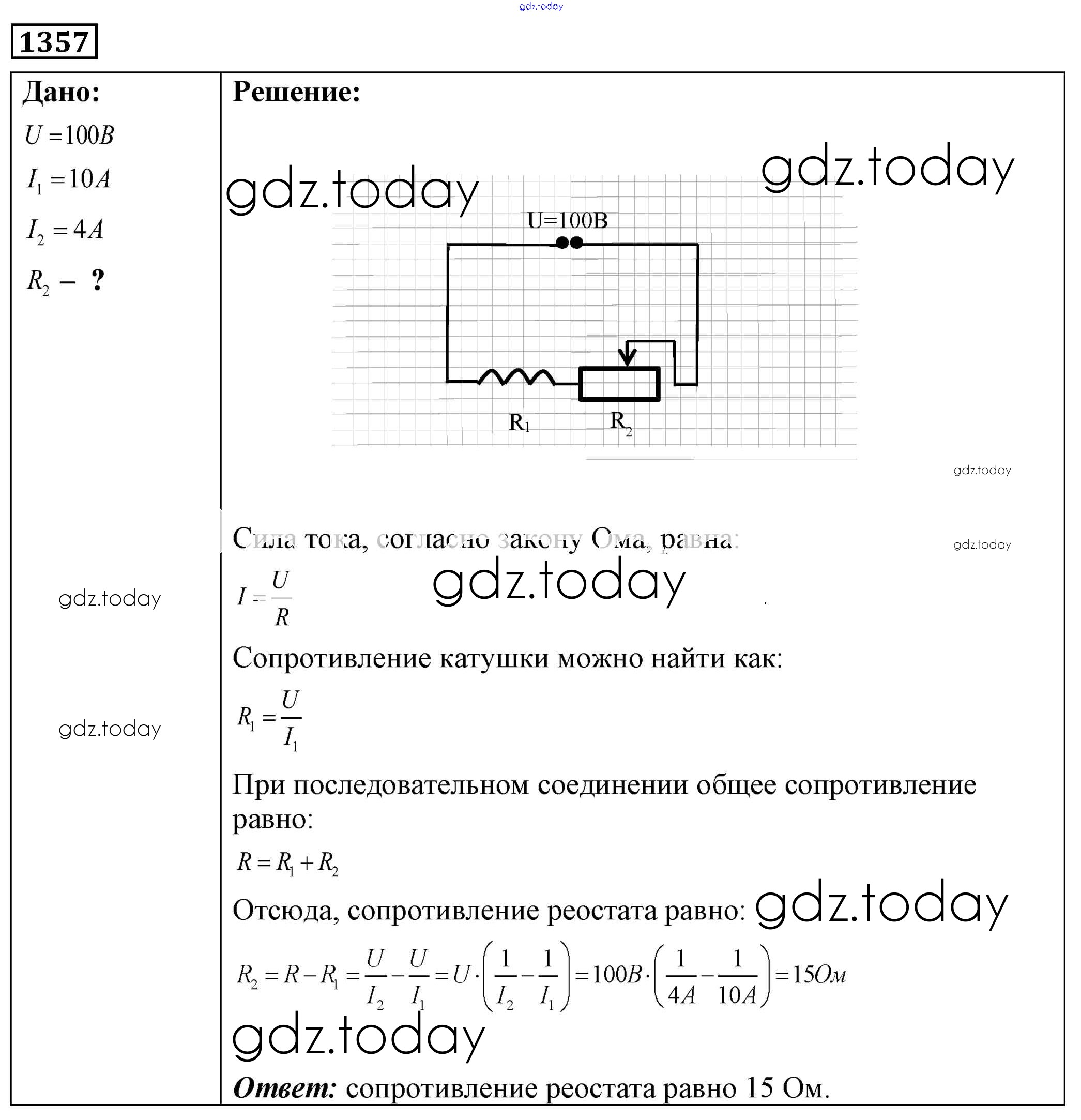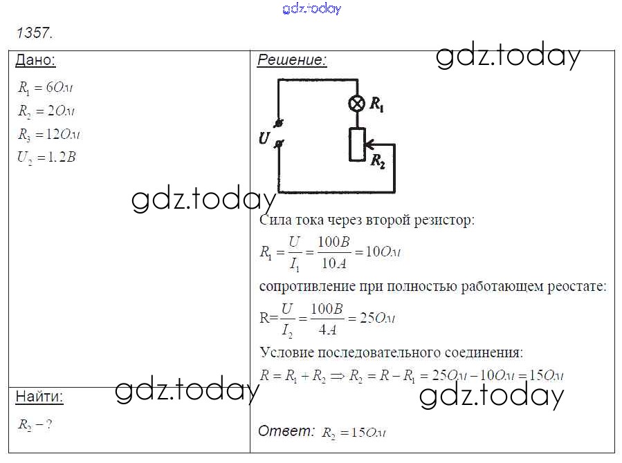 На страницах сайта gdz.today вы найдете учебный и вспомогательный материал, направленный на улучшения знаний школьной программы. ГДЗ - онлайн мир знаний Решение к заданиям 1357 Сборнику задач по Физике для 7-9 класса Лукашик, Иванова Просвещение 2011