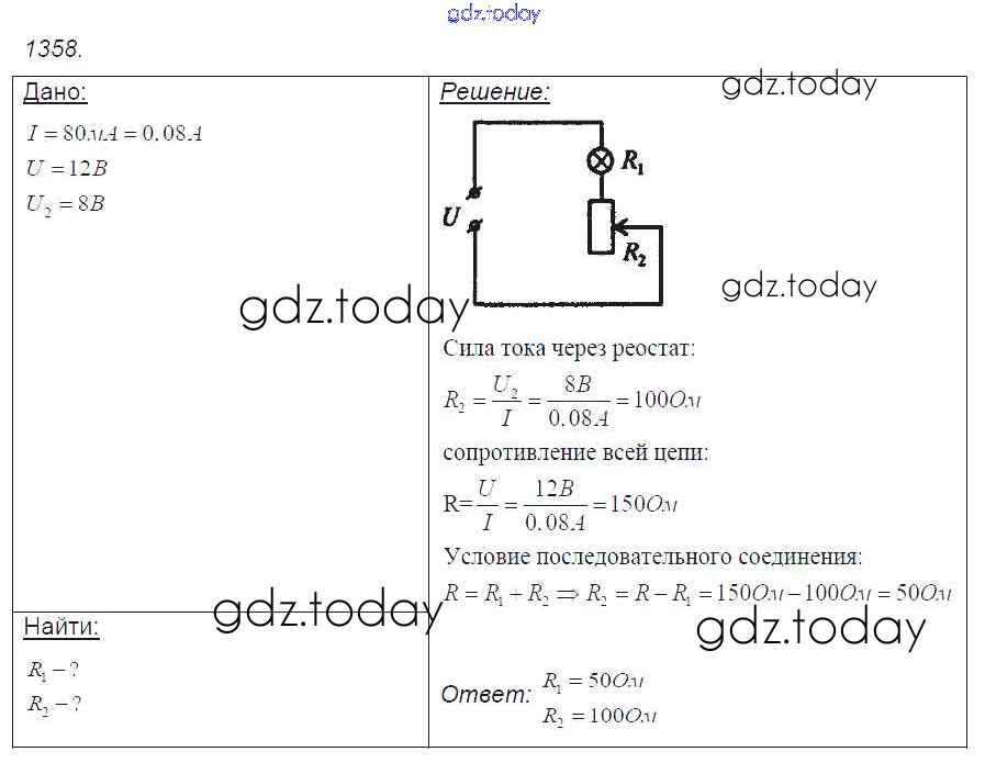 На страницах сайта gdz.today вы найдете учебный и вспомогательный материал, направленный на улучшения знаний школьной программы. ГДЗ - онлайн мир знаний Решение к заданиям 1358 Сборнику задач по Физике для 7-9 класса Лукашик, Иванова Просвещение 2011