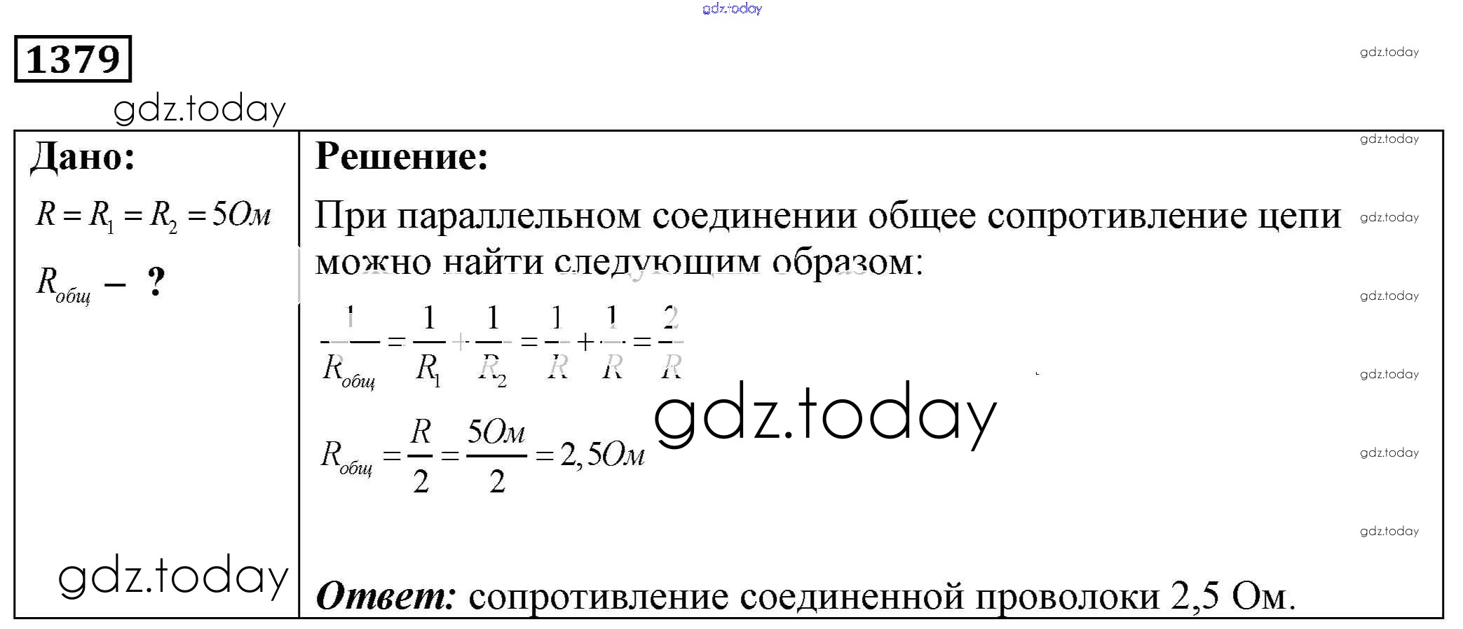 На страницах сайта gdz.today вы найдете учебный и вспомогательный материал, направленный на улучшения знаний школьной программы. ГДЗ - онлайн мир знаний Решение к заданиям 1379 Сборнику задач по Физике для 7-9 класса Лукашик, Иванова Просвещение 2011