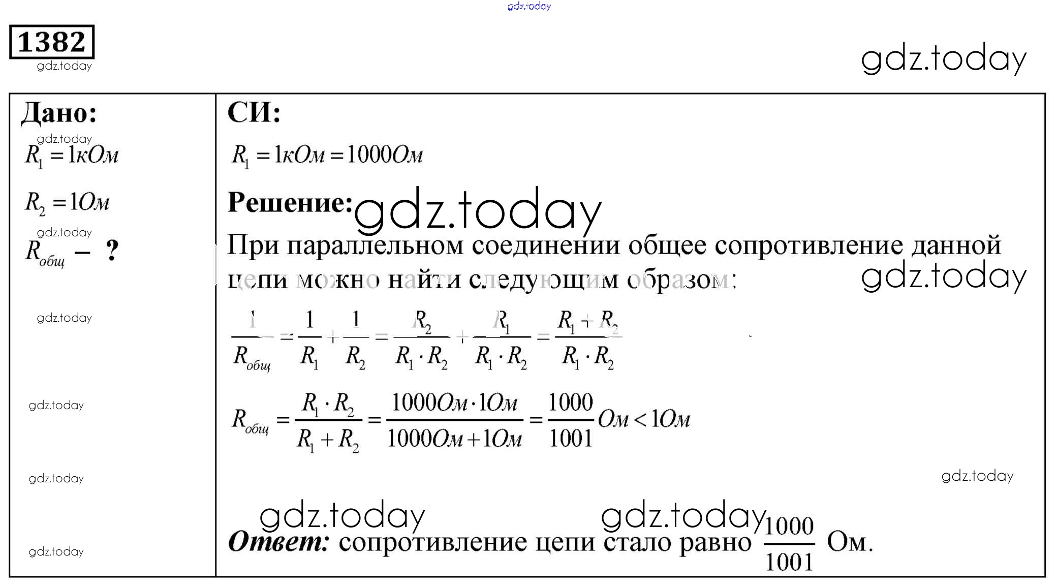 На страницах сайта gdz.today вы найдете учебный и вспомогательный материал, направленный на улучшения знаний школьной программы. ГДЗ - онлайн мир знаний Решение к заданиям 1382 Сборнику задач по Физике для 7-9 класса Лукашик, Иванова Просвещение 2011