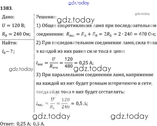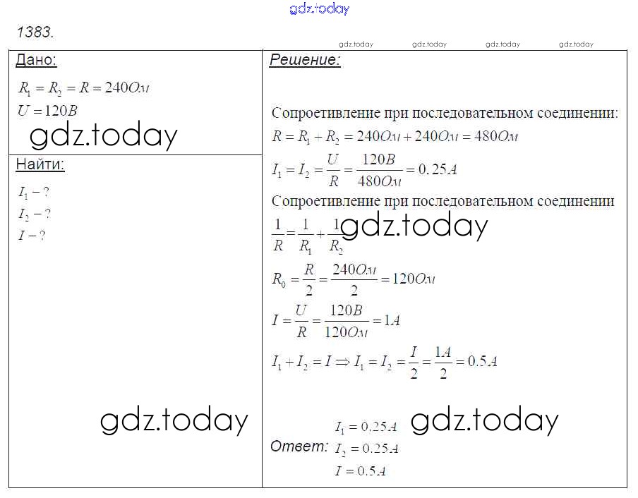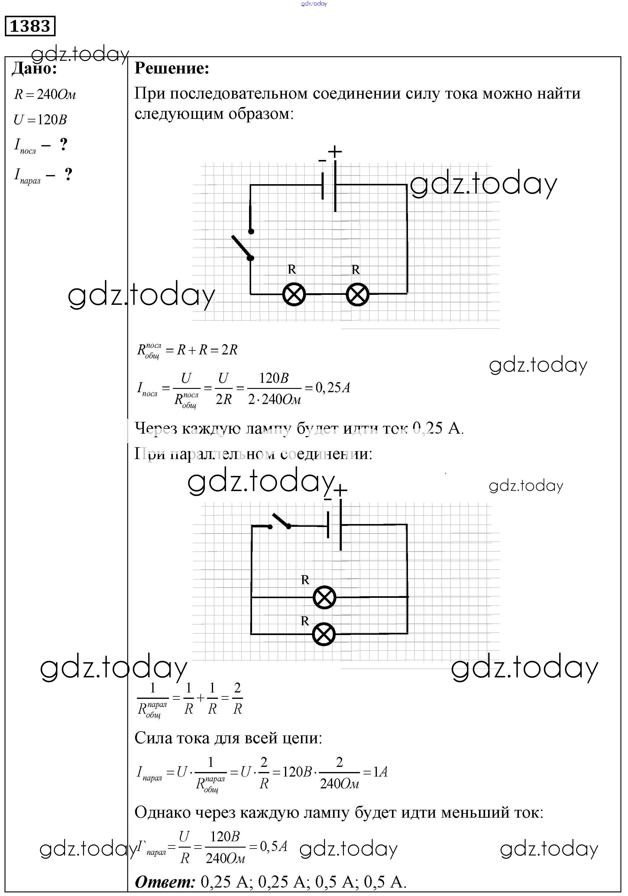 На страницах сайта gdz.today вы найдете учебный и вспомогательный материал, направленный на улучшения знаний школьной программы. ГДЗ - онлайн мир знаний Решение к заданиям 1383 Сборнику задач по Физике для 7-9 класса Лукашик, Иванова Просвещение 2011