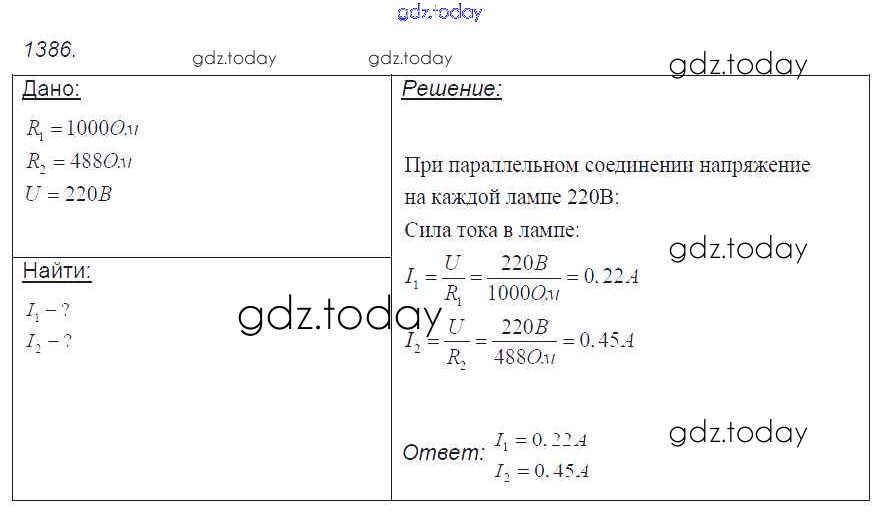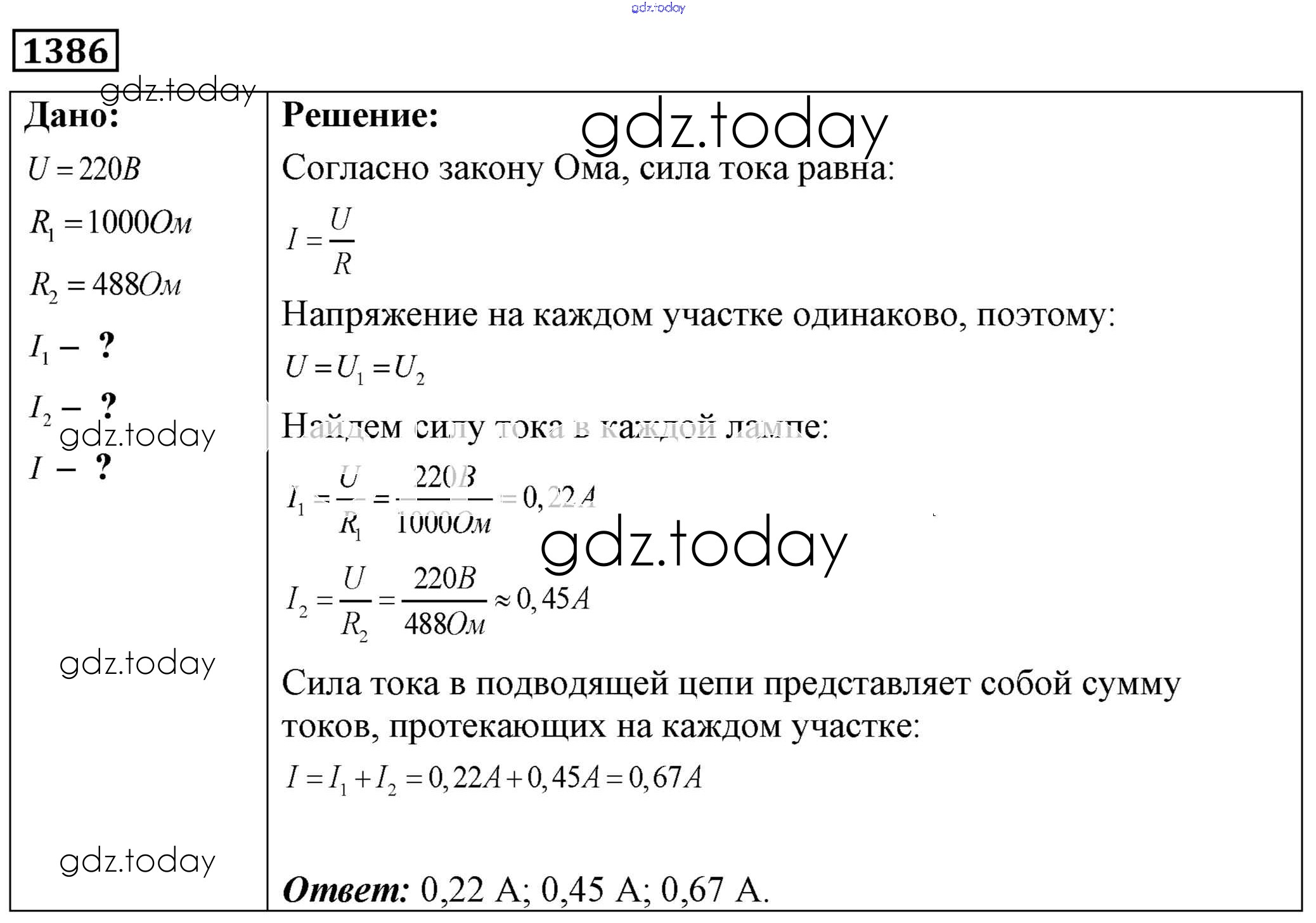 На страницах сайта gdz.today вы найдете учебный и вспомогательный материал, направленный на улучшения знаний школьной программы. ГДЗ - онлайн мир знаний Решение к заданиям 1386 Сборнику задач по Физике для 7-9 класса Лукашик, Иванова Просвещение 2011