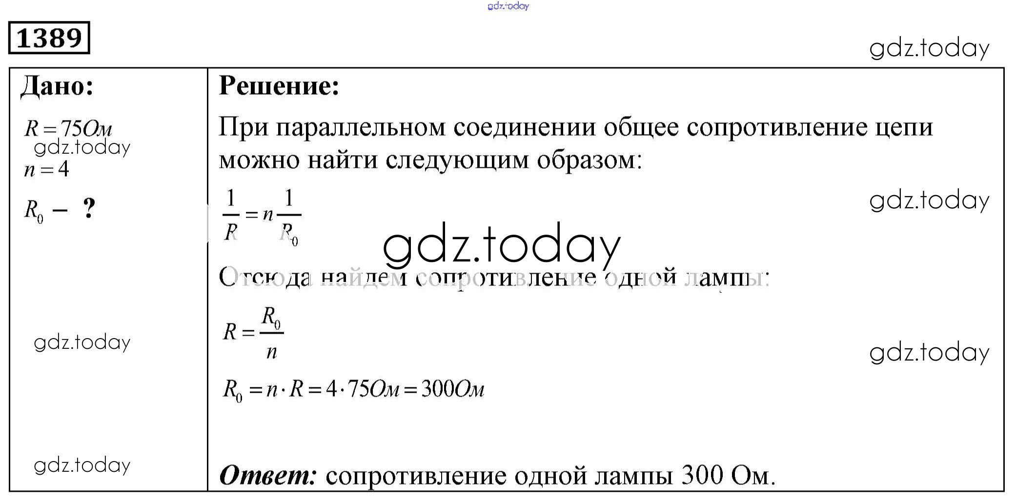 На страницах сайта gdz.today вы найдете учебный и вспомогательный материал, направленный на улучшения знаний школьной программы. ГДЗ - онлайн мир знаний Решение к заданиям 1389 Сборнику задач по Физике для 7-9 класса Лукашик, Иванова Просвещение 2011