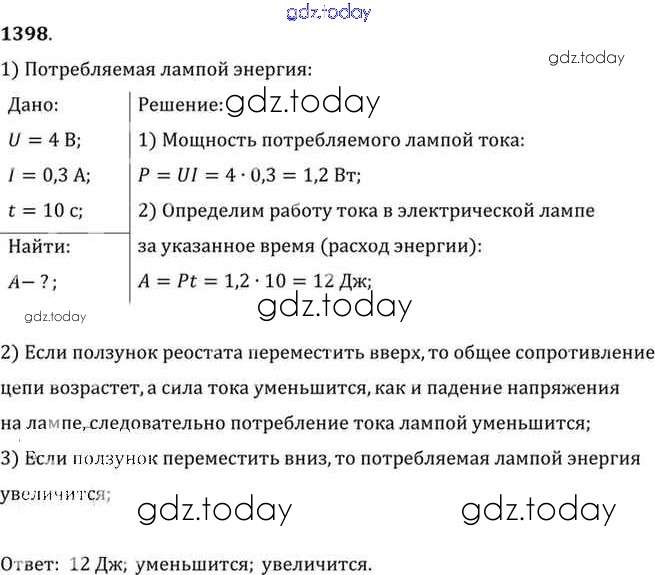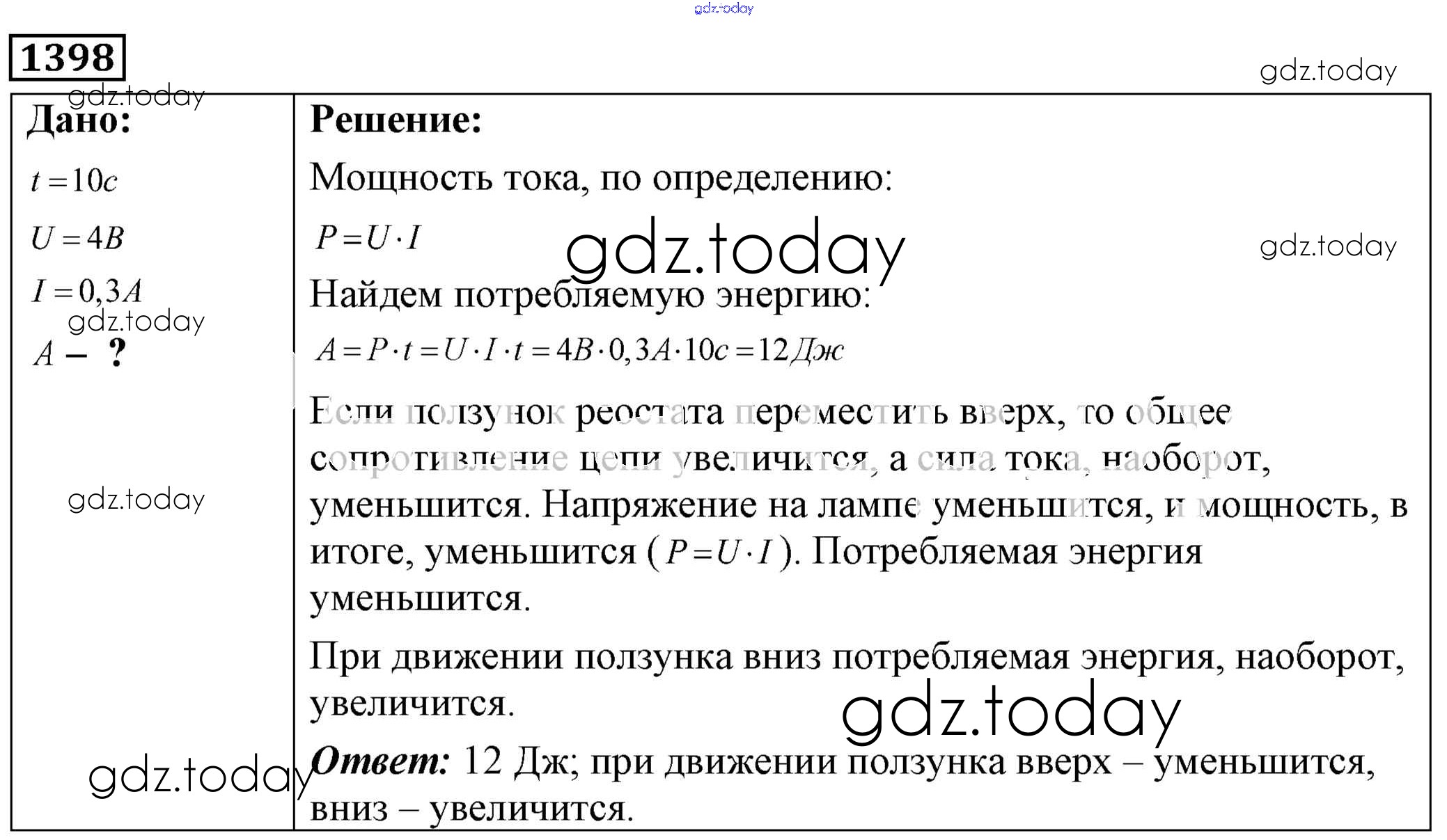 На страницах сайта gdz.today вы найдете учебный и вспомогательный материал, направленный на улучшения знаний школьной программы. ГДЗ - онлайн мир знаний Решение к заданиям 1398 Сборнику задач по Физике для 7-9 класса Лукашик, Иванова Просвещение 2011
