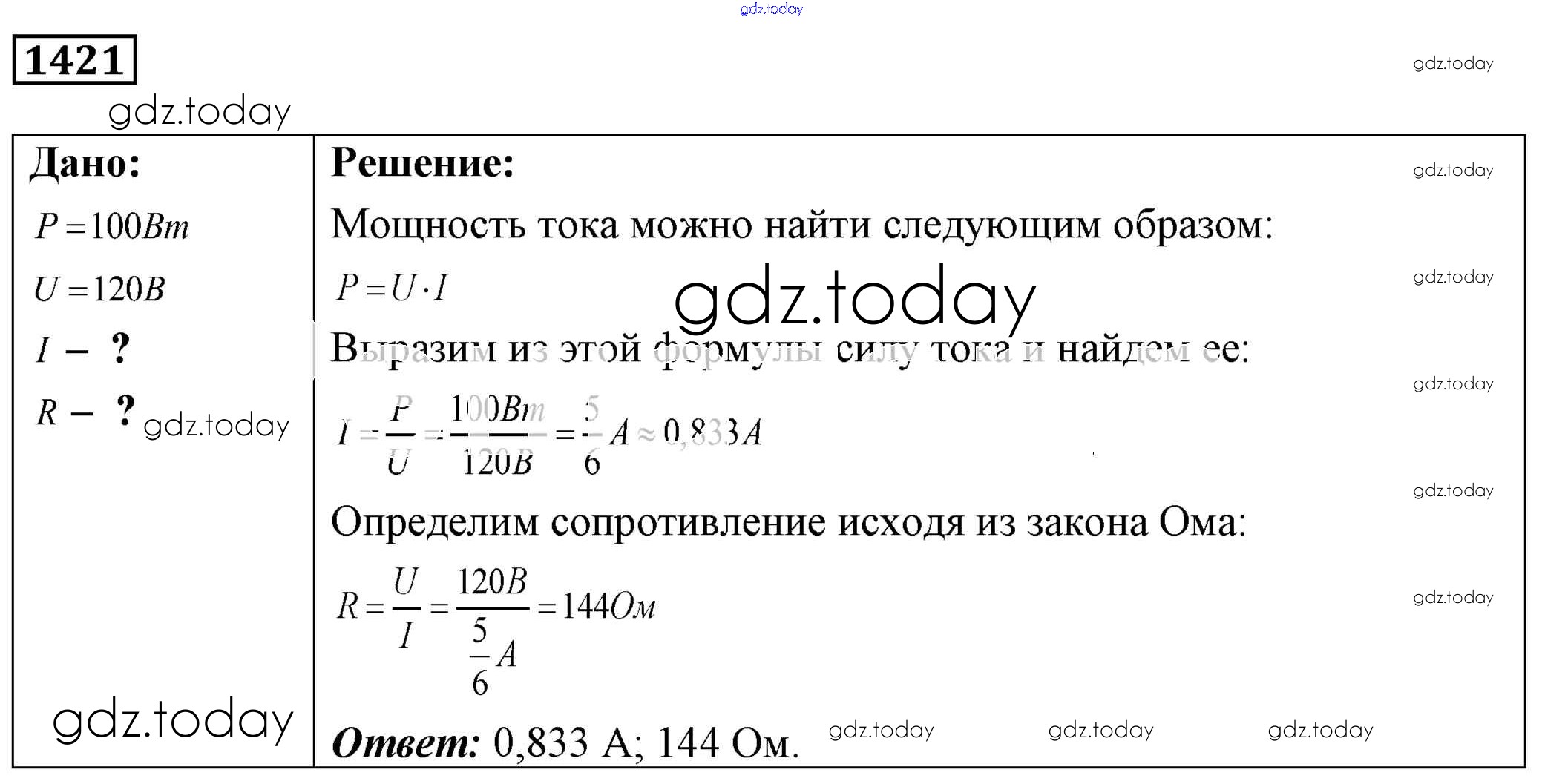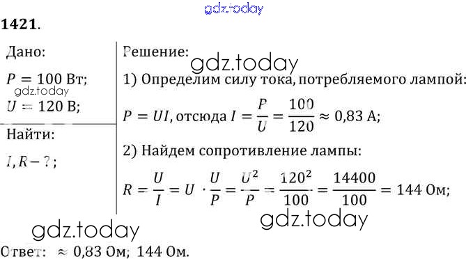 На страницах сайта gdz.today вы найдете учебный и вспомогательный материал, направленный на улучшения знаний школьной программы. ГДЗ - онлайн мир знаний Решение к заданиям 1421 Сборнику задач по Физике для 7-9 класса Лукашик, Иванова Просвещение 2011