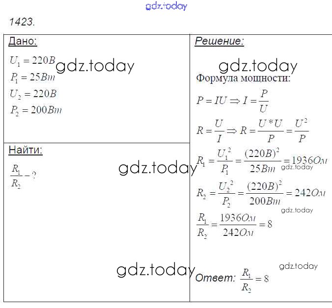 На страницах сайта gdz.today вы найдете учебный и вспомогательный материал, направленный на улучшения знаний школьной программы. ГДЗ - онлайн мир знаний Решение к заданиям 1423 Сборнику задач по Физике для 7-9 класса Лукашик, Иванова Просвещение 2011