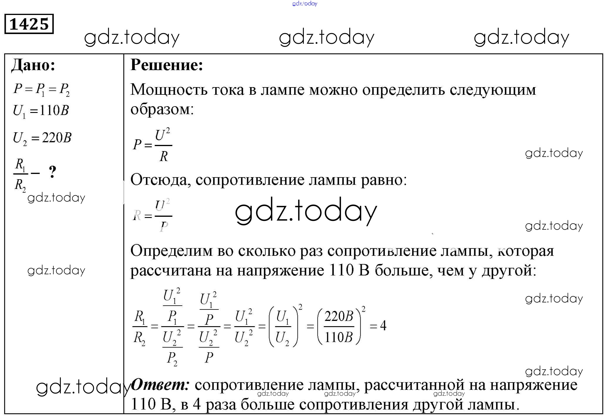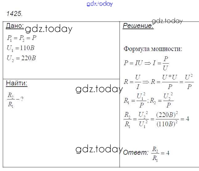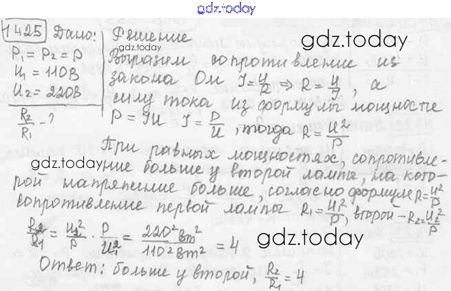На страницах сайта gdz.today вы найдете учебный и вспомогательный материал, направленный на улучшения знаний школьной программы. ГДЗ - онлайн мир знаний Решение к заданиям 1425 Сборнику задач по Физике для 7-9 класса Лукашик, Иванова Просвещение 2011