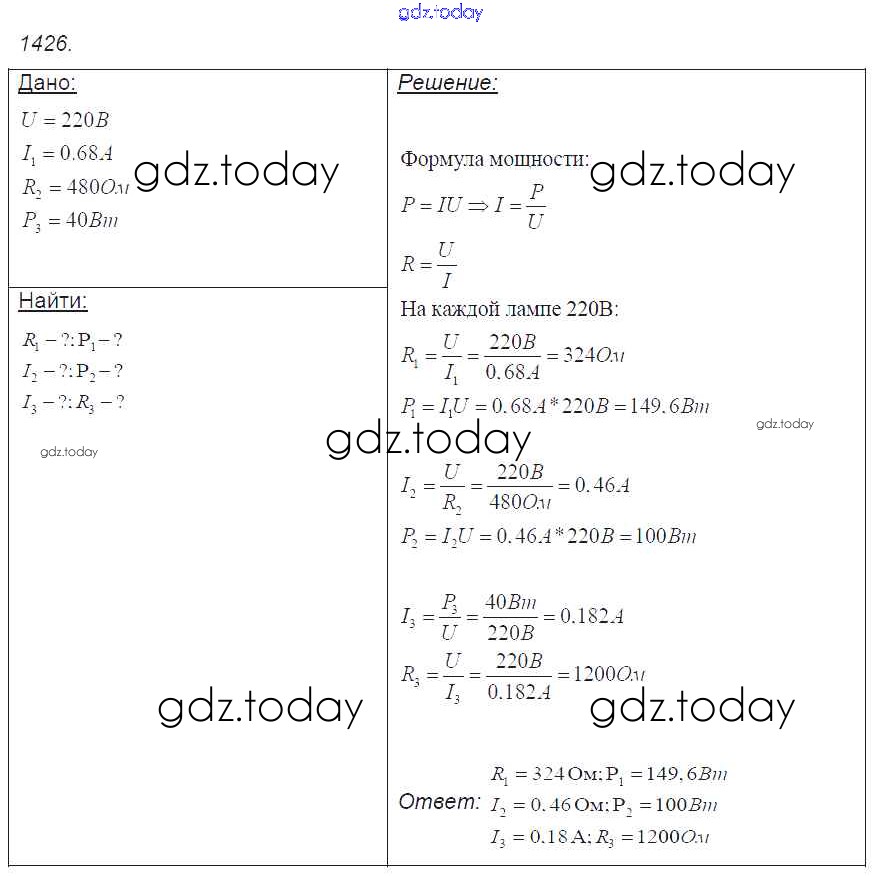 На страницах сайта gdz.today вы найдете учебный и вспомогательный материал, направленный на улучшения знаний школьной программы. ГДЗ - онлайн мир знаний Решение к заданиям 1426 Сборнику задач по Физике для 7-9 класса Лукашик, Иванова Просвещение 2011