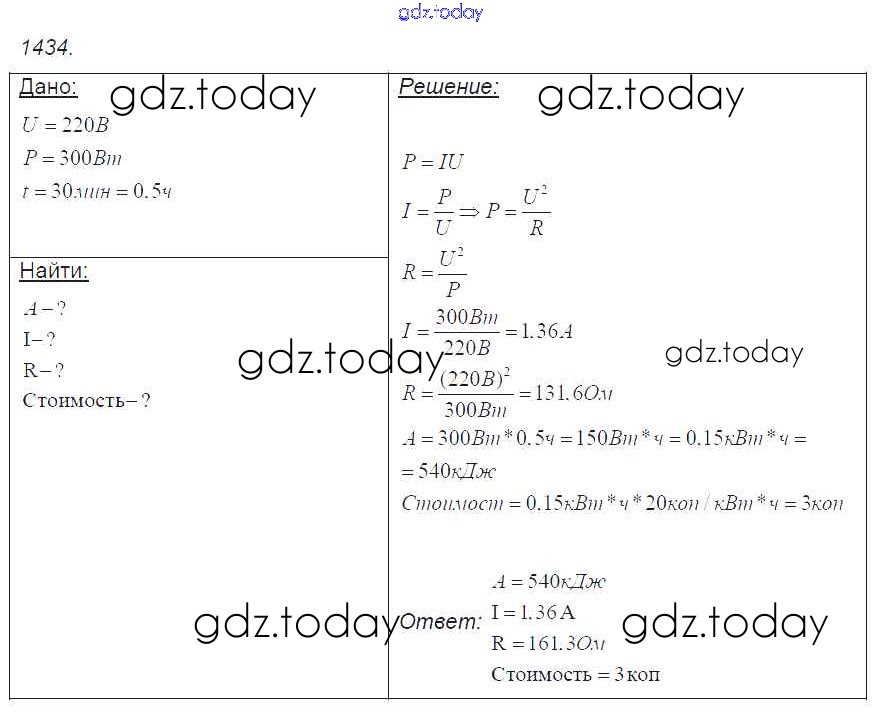 На страницах сайта gdz.today вы найдете учебный и вспомогательный материал, направленный на улучшения знаний школьной программы. ГДЗ - онлайн мир знаний Решение к заданиям 1434 Сборнику задач по Физике для 7-9 класса Лукашик, Иванова Просвещение 2011